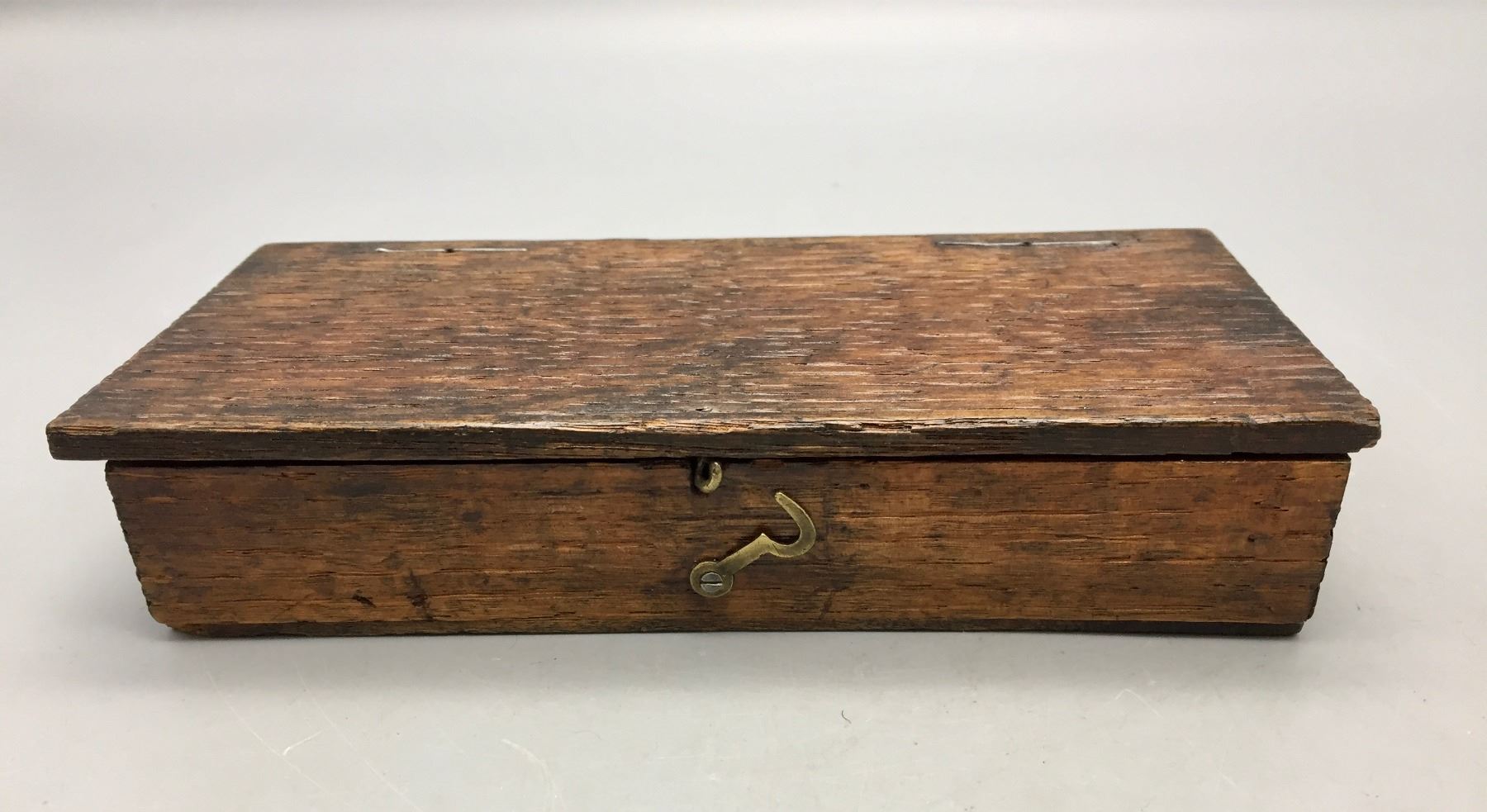 Size: 7"w x 8-1/2" long x 3-1/2" deep. Condition: Good for its age, normal wear expected. Please look closely at the pictures - they are an important part of our description.