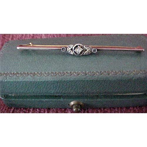 <tr><td>Title:Antique Gold and Diamond Bar Pin in Box</td></tr>