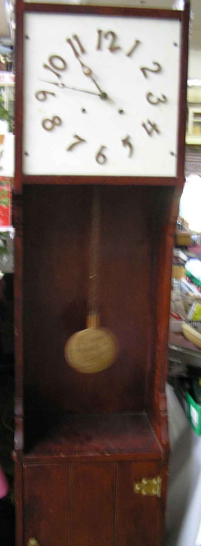 Antique Grandfather clock with brass numbers, hands and pendulum with lower lockable storage compartment circa early 1900’s est. value $1000.00-$1200.00