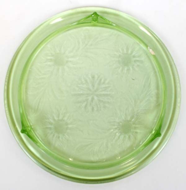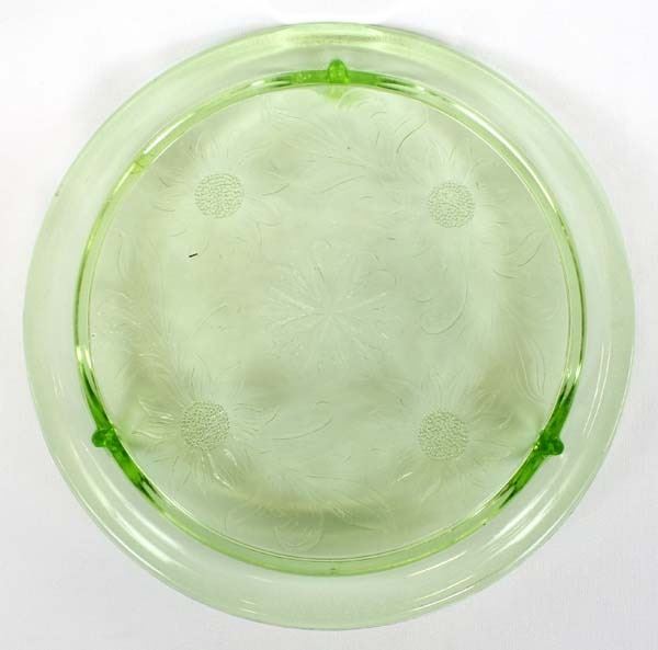 Antique Green Vaseline Footed Sunflower Cake Plate. This wonderful piece measures 1 3/4'' x 10''