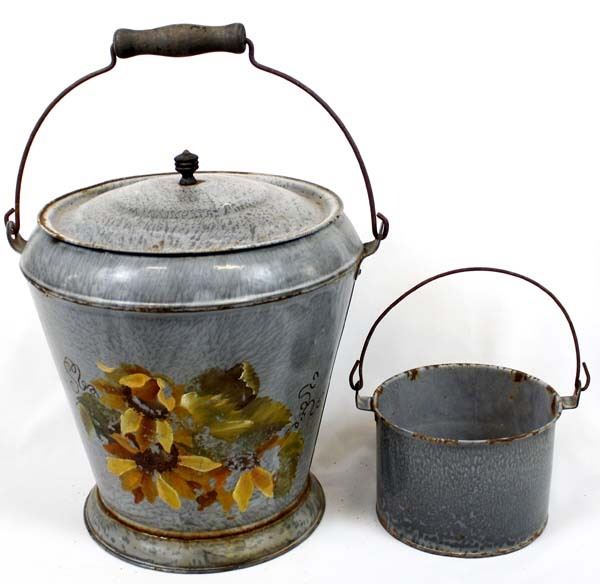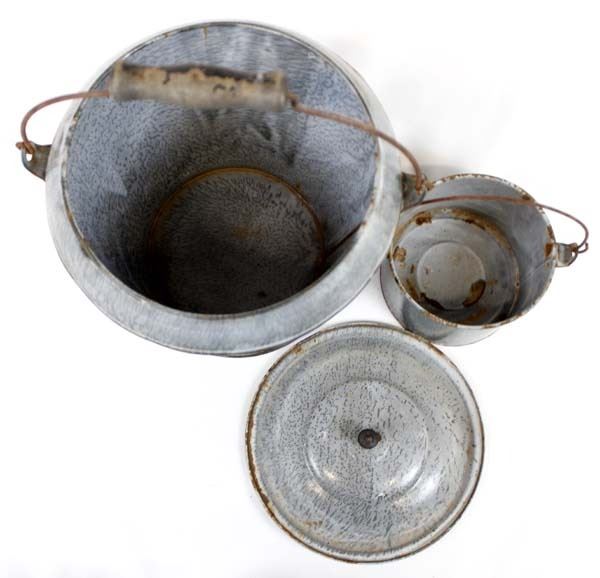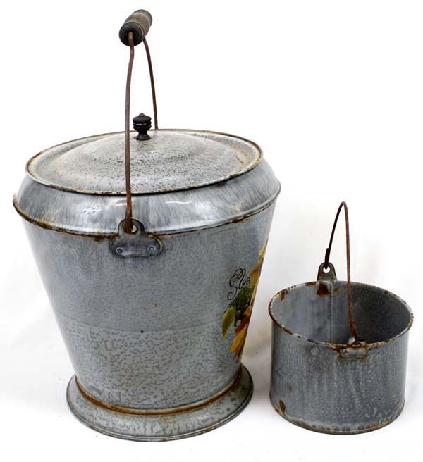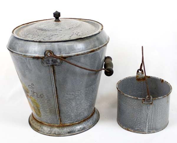 Antique Grey Graniteware Milk Can and Cream Bucket. The tallest of these 2 great pieces is 12'' x 11''.