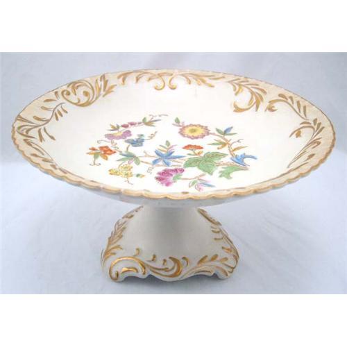 A lovely early porcelain hand painted floral motif footed compote or tidbit tray in excellent condition with no chips or cracks noted. It measures 5" tall by 8 7/8" across. All of the gold accent is still intact around the rim and on the base, and the painting is nice and colorful as you can see in the photos. There are no makers marks on this particular piece that I can find, but you can tell it is definitely a quality piece. Add this fabulous find to your collection!