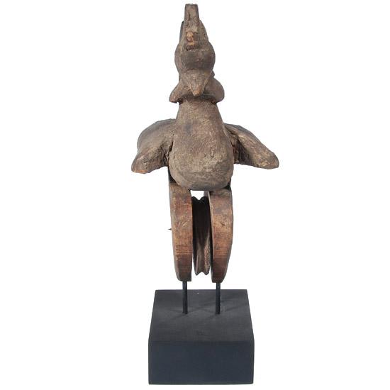 Unique Antique Carved of Teak As Bird; Used To Direct Silk Thread To Silk Loom; 10"; on base