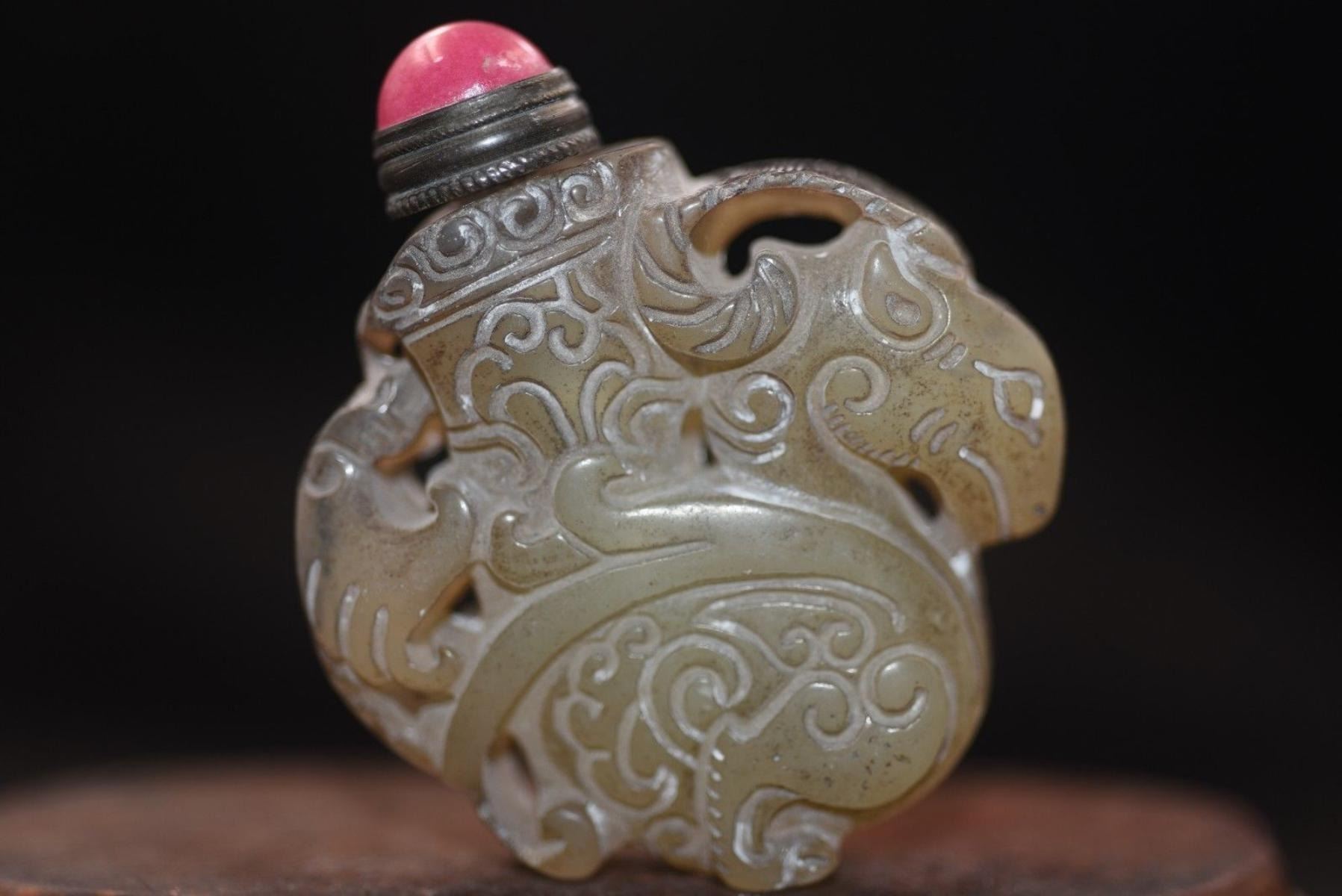 Hand carved sheep 2.6 inches old jade snuff bottle