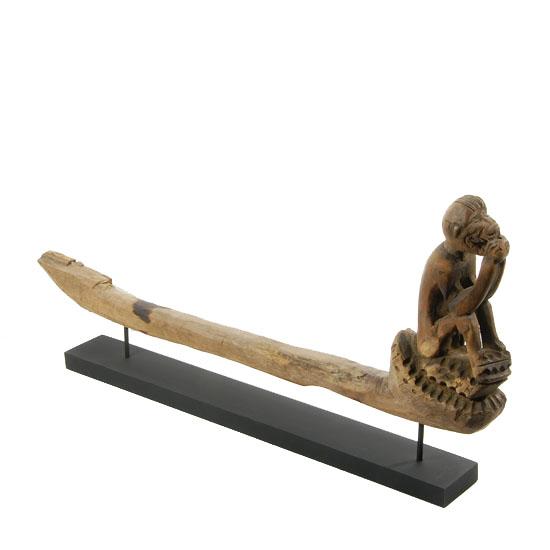 Excellent Condition; carved monkey image; originally mounted on cart as fender in front of wheel; on base; 35" x 17" x 4"