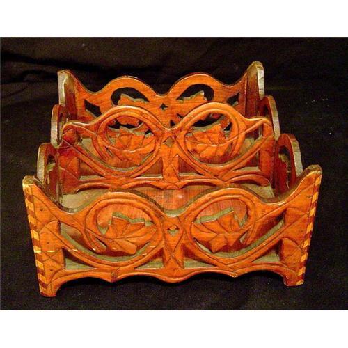 <tr><td>Title:Antique Hand Carved Walnut Desk Tray</td></tr>
