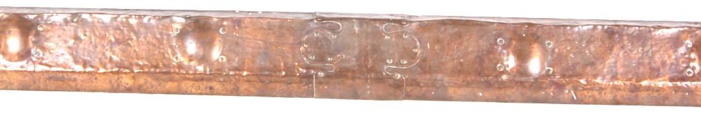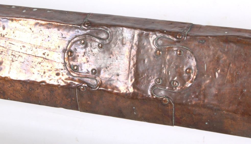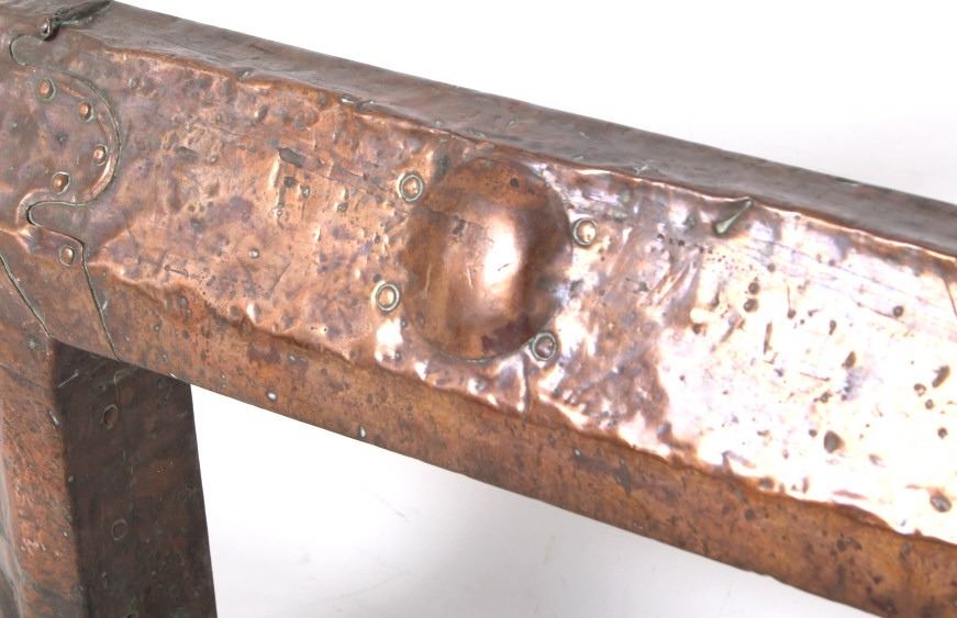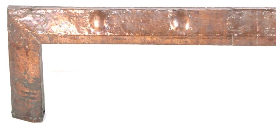 This lot features a antique copper mantel piece. This piece is a beautiful example of hand worked copper, It has great detail and a great look. This piece is in good condition for its age, with great patina. It measures 60 1/4" W x 3 1/8" H x 14 1/2" D
