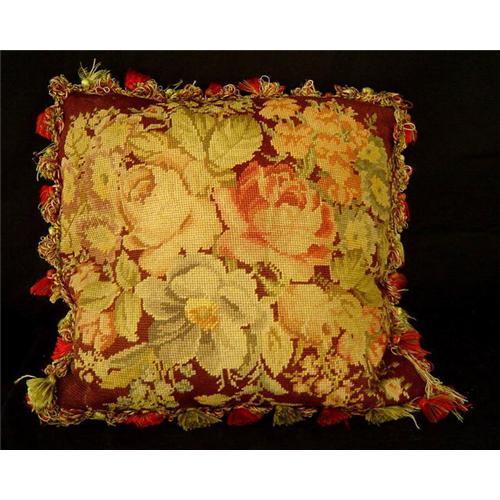 Antique Floral Hand Made Needlepoint Pillow