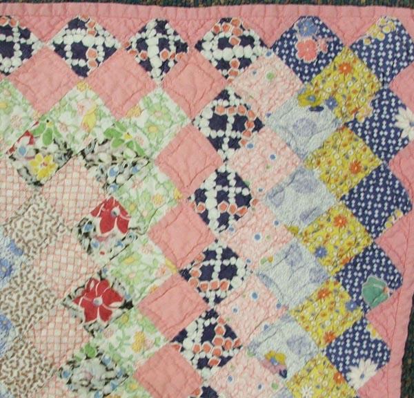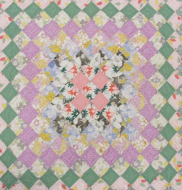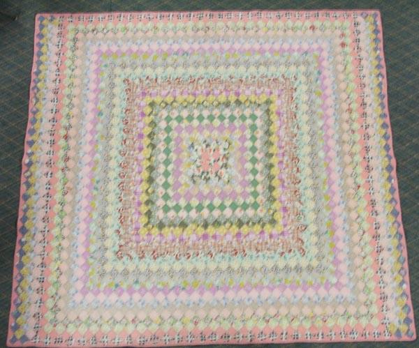 Antique Hand Stitched Patchwork Quilt. Squares are approx. 1.5''. Some of the squares patches are worn through. Measures 72''x80''. SHI $15.