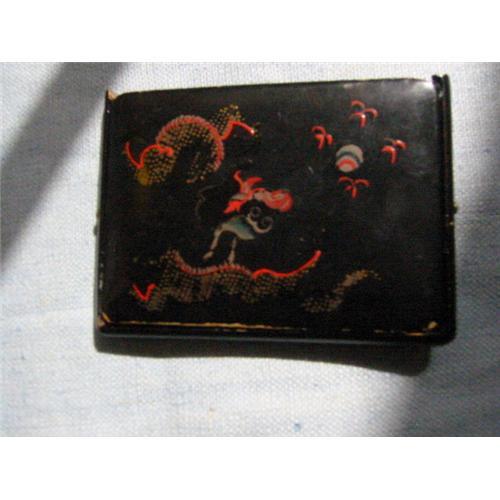 This charming wood hand paint in red and gold case decorated with dragon motif on black wood. It would make a beautiful and decorative display. It would also make a wonderful designed business card holder. In old age has been part of smoking accessory for thin cigar or place for tobacco. This case is very nice and collectible. It is in fair antique condition, with several imperfections. It is 3 inch by 4 inch and .5 inch deep. Something to think about.