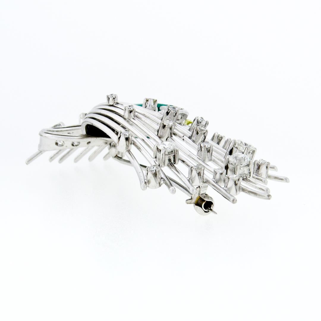 Antique Handmade Platinum 7.3 ctw GIA Colombian Emerald Round Diamond Wire Brooc