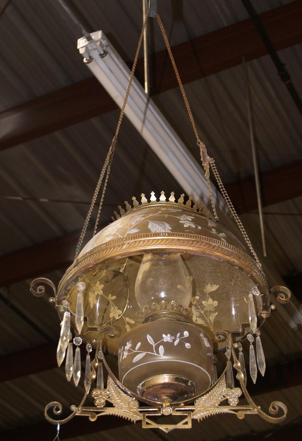 Antique Hanging Pull-Down Lamp c1880's w/ crystals