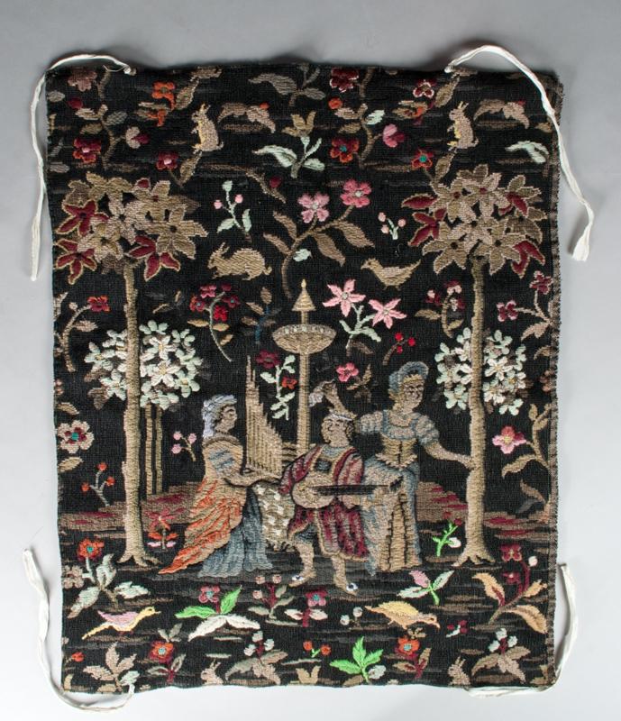 Depicting three figures playing instruments with colorful flowers and birds. 29.5" H x 23" W.