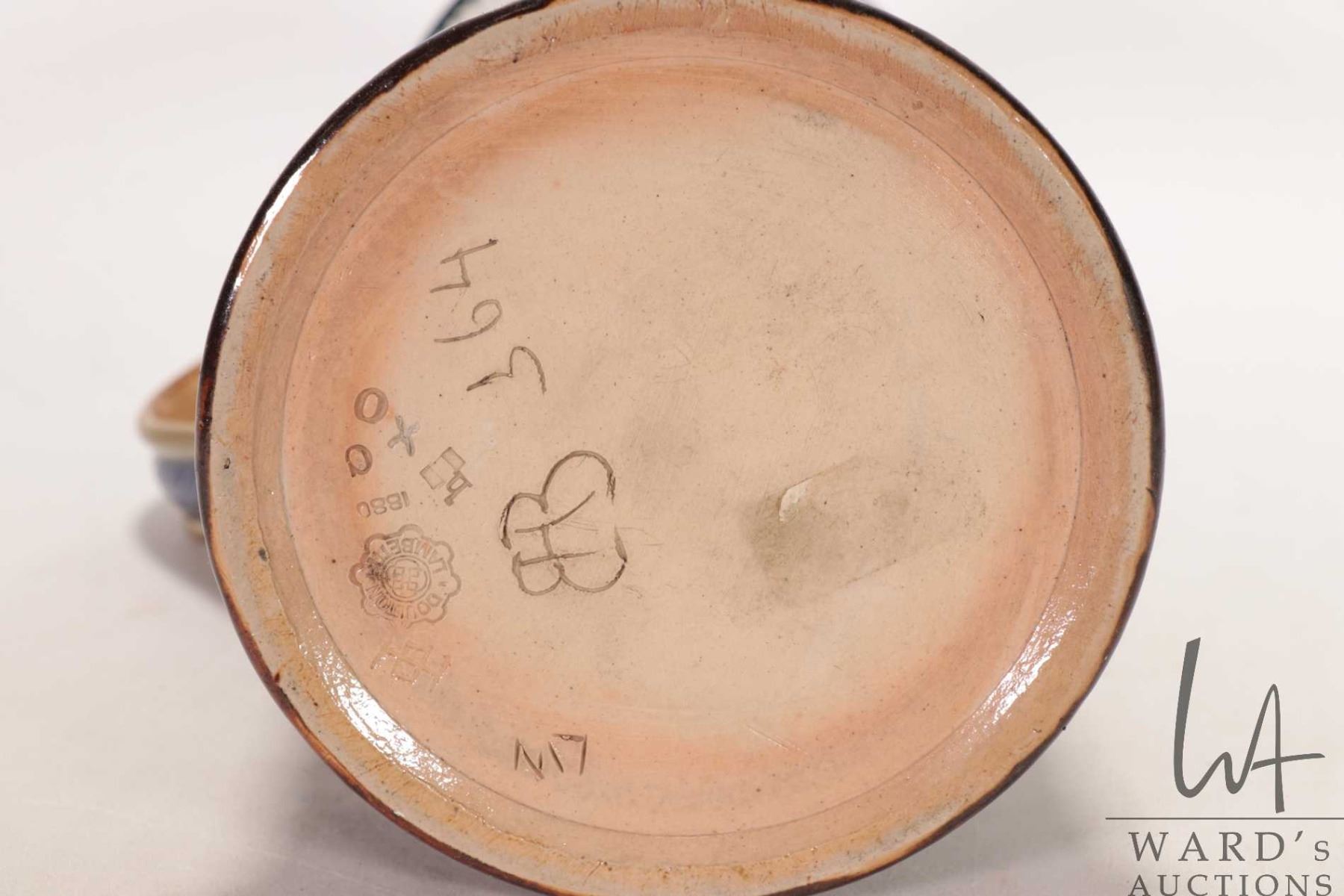 Antique Hannah Barlow, artist signed Doulton Lambeth pitcher with sgraffito scene depicting a child