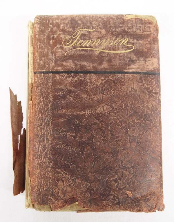 Antique Hardback Book The Poetical Works of Alfred Tennyson, Poet Laureate Complete Edition Illustrated, very fragile cover embossed with leaves, late 1800's, 5''W x 7.5''L x 1.5''H