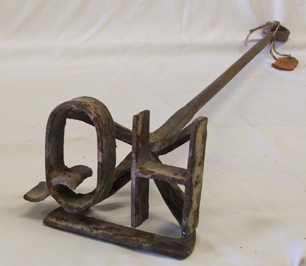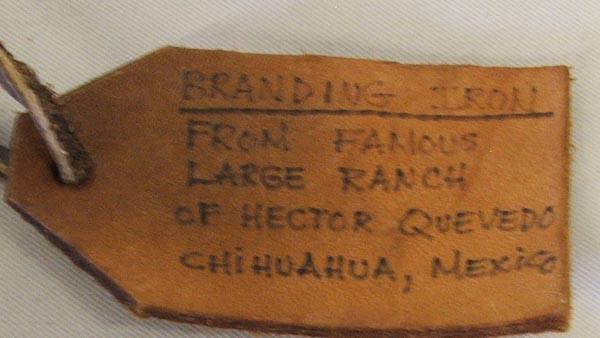 Antique Hector Quevedo Ranch Brand from Chihuahua, Mexico, brand measures approx. 5'' x 7'' (HQ). SHI $30.