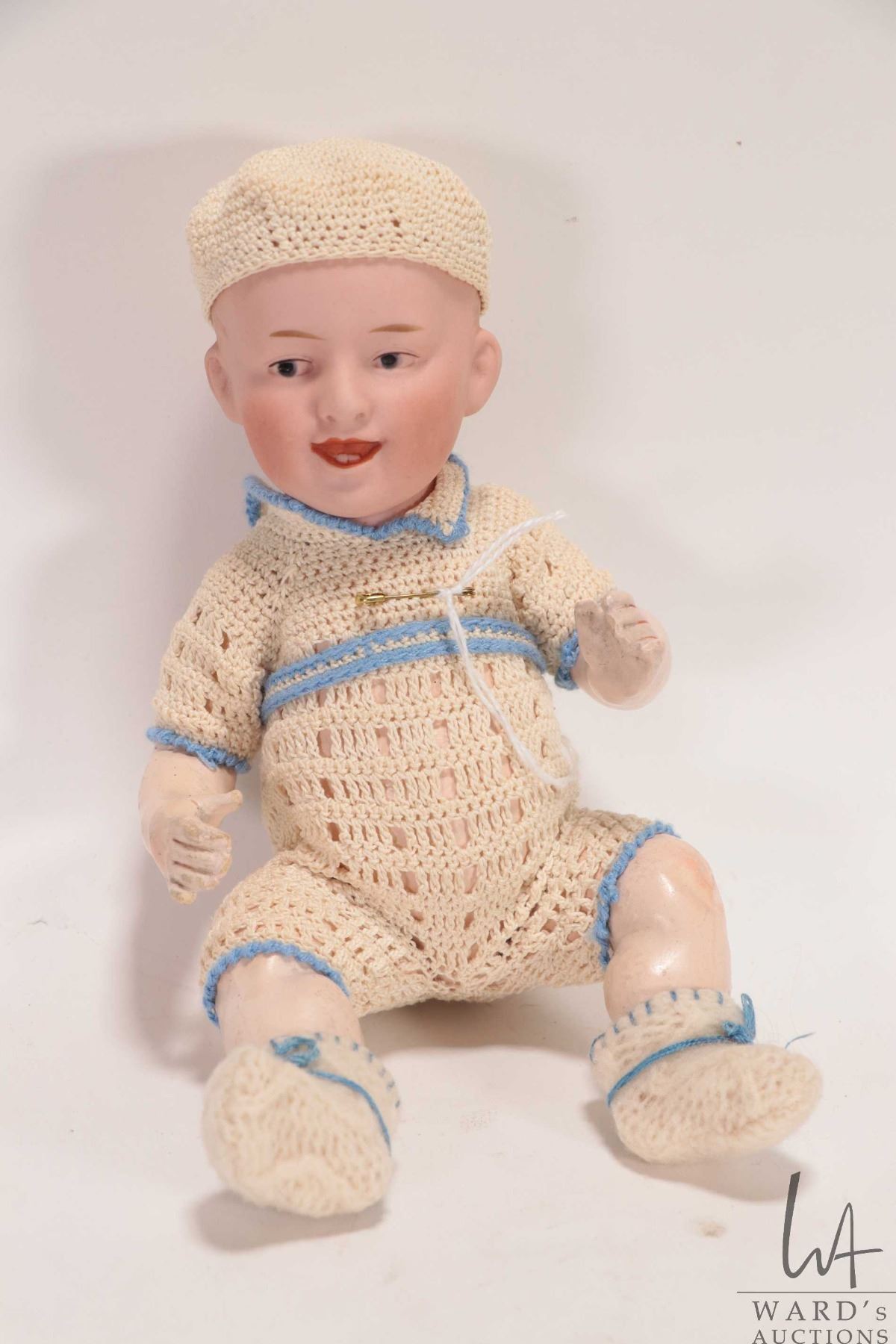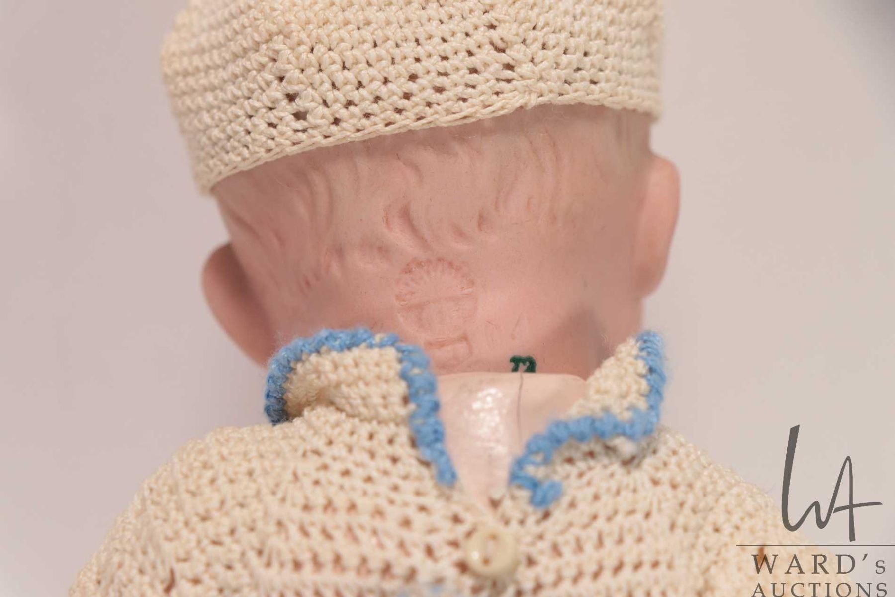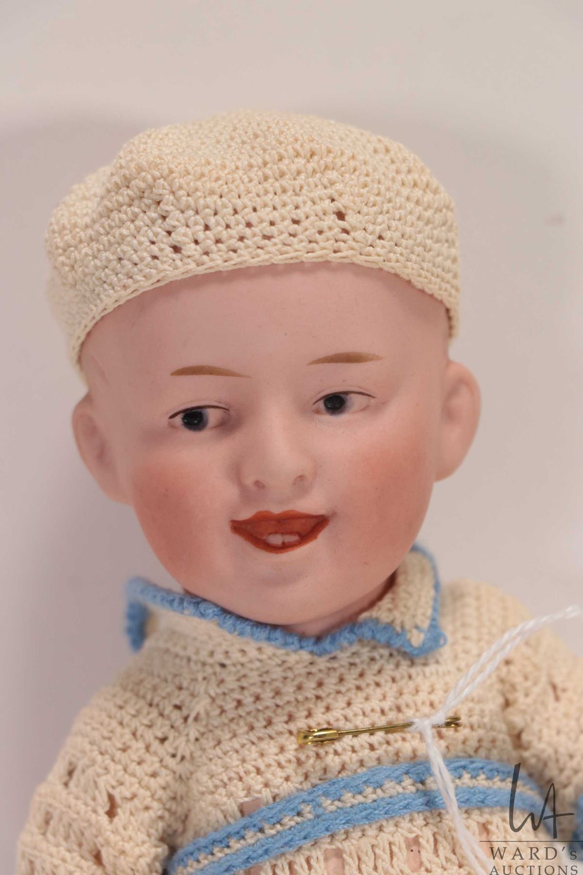Antique Heubach character doll, mold 7604, with sun marking, bisque head on five piece composition baby body, 8" in height