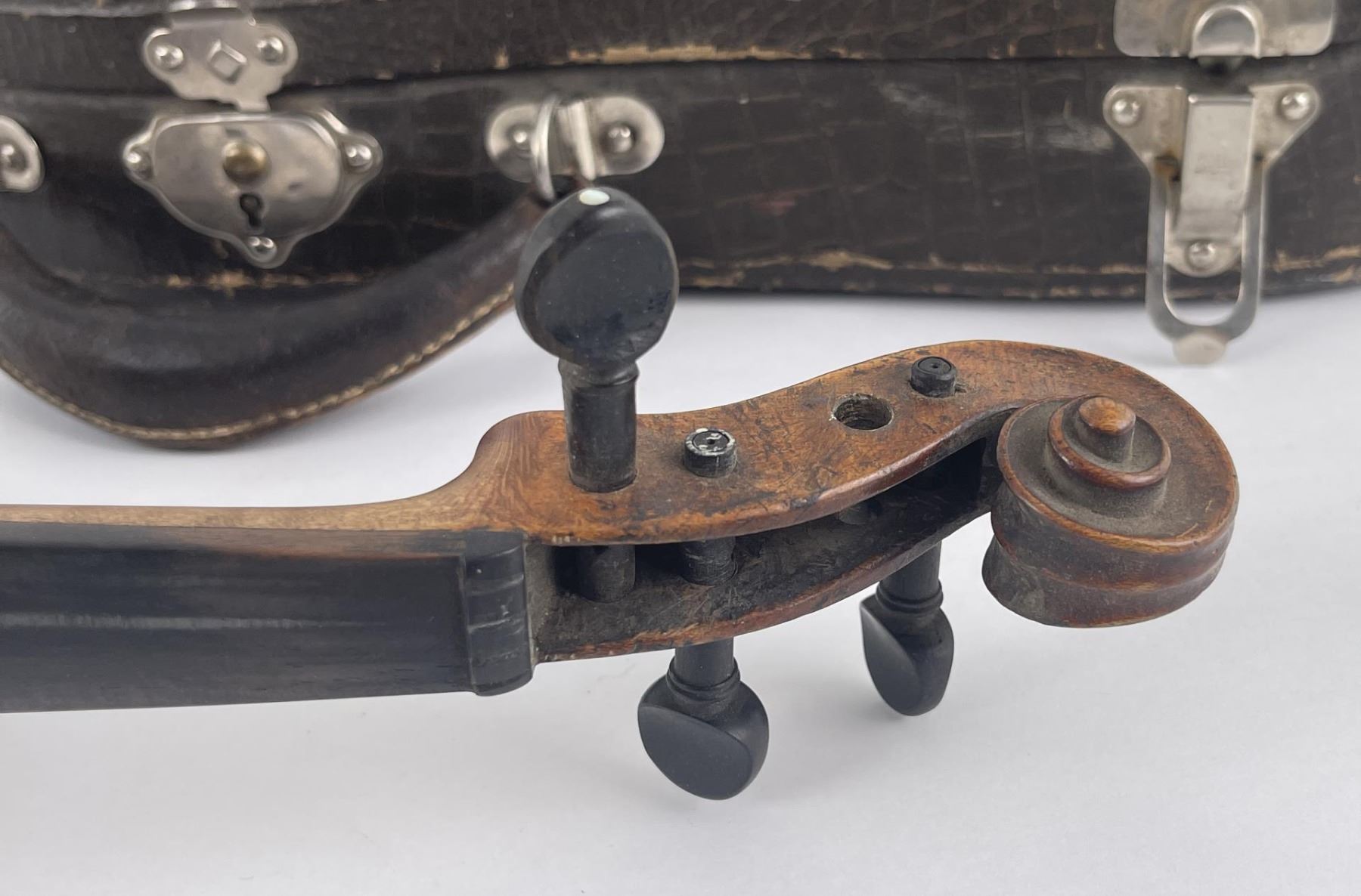 Nice old set in case. Violin has some condition issues as shown.