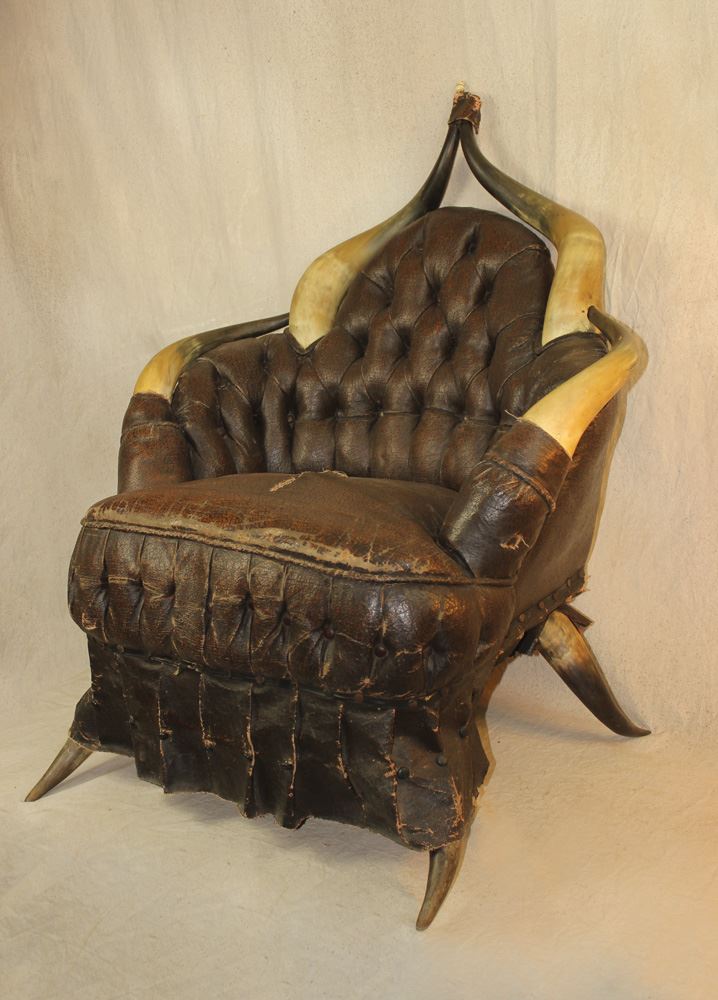 Fabulous large early horn chair with stylish button tufted design. In untouched original condition. Very solid and with a great look.