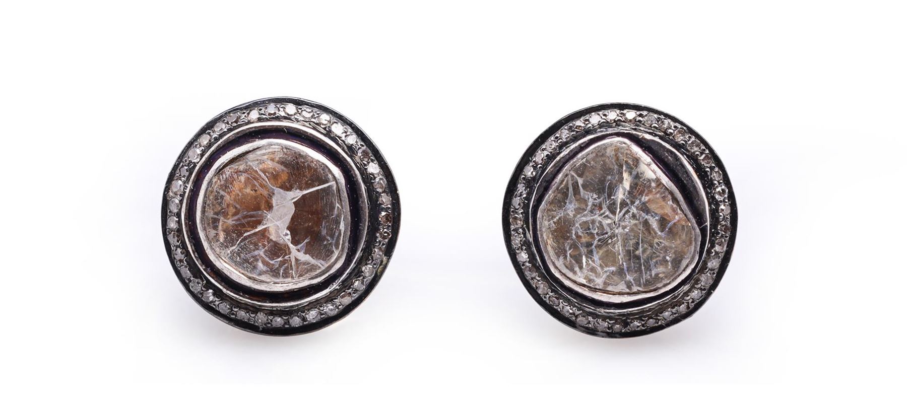Antique Indian Gold Topped Silver & Diamond Earrings containing diamonds weighing approximately 1.2 cts. Total weight of 4.9 gm. Estimated retail value $680.