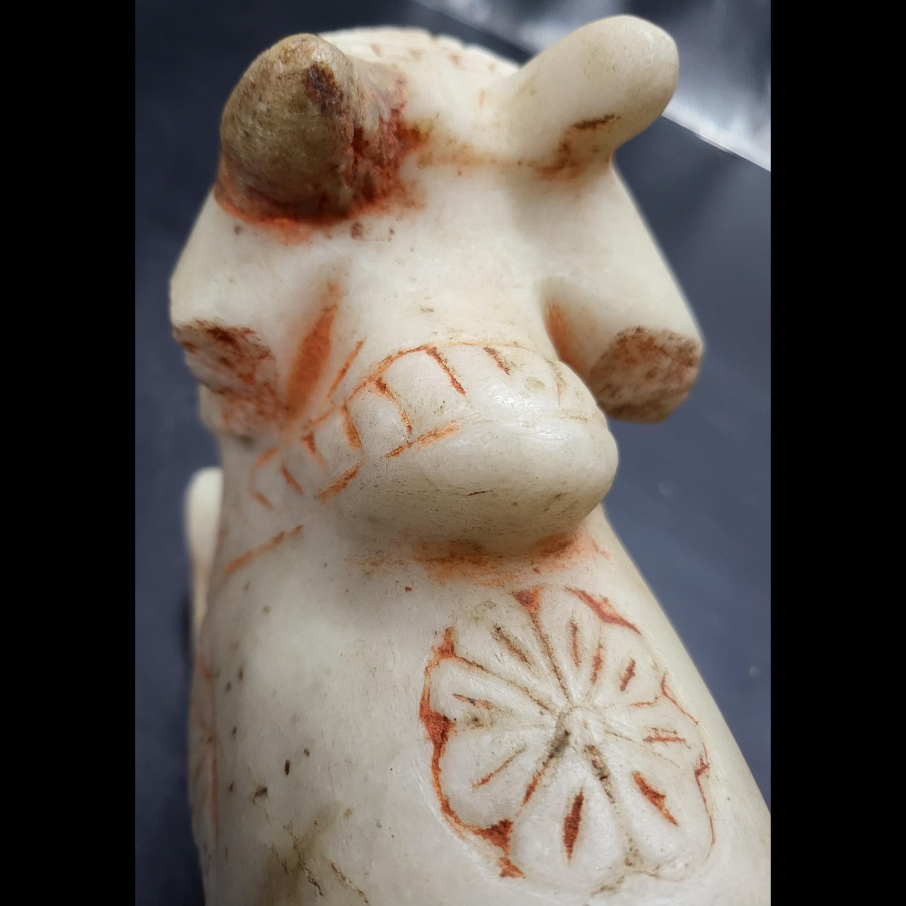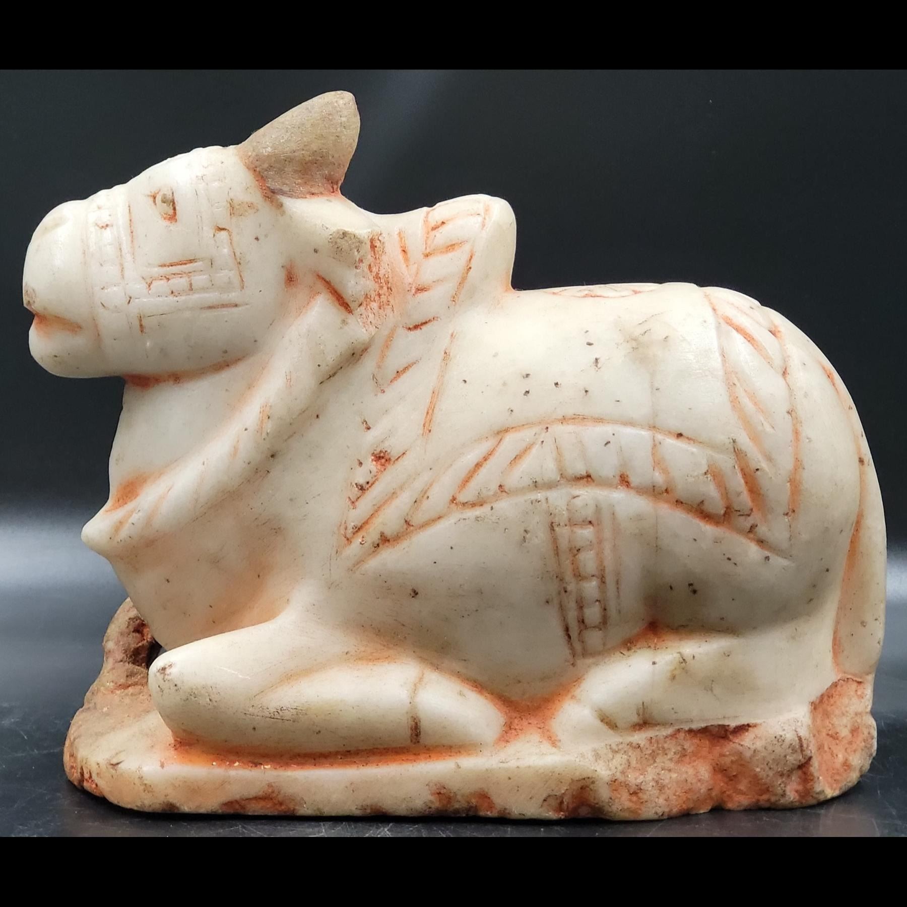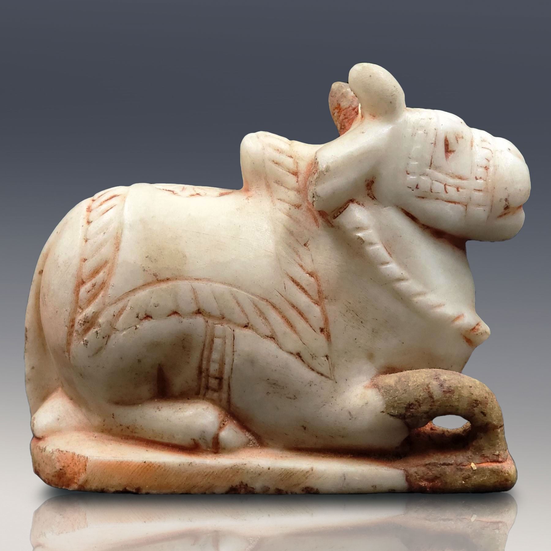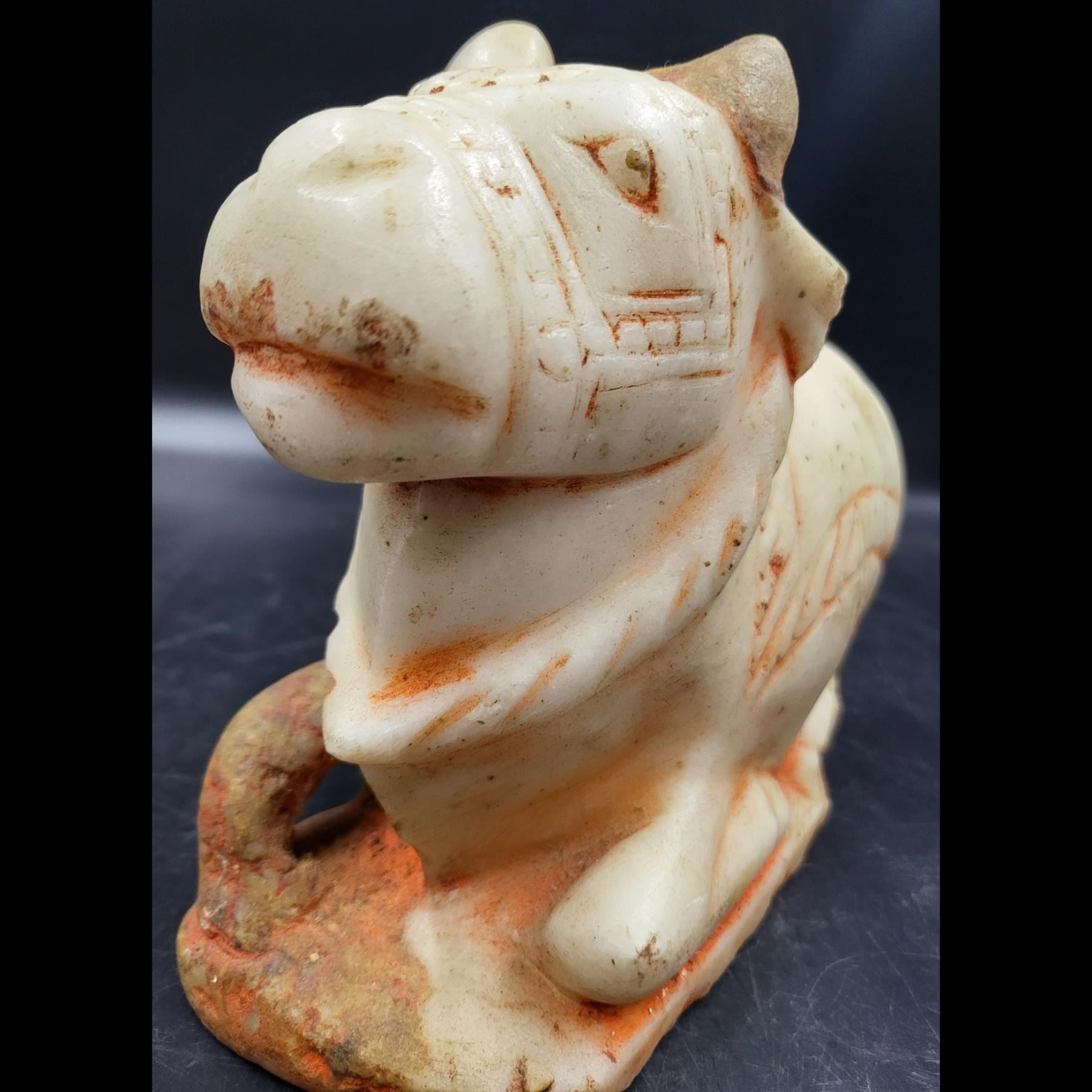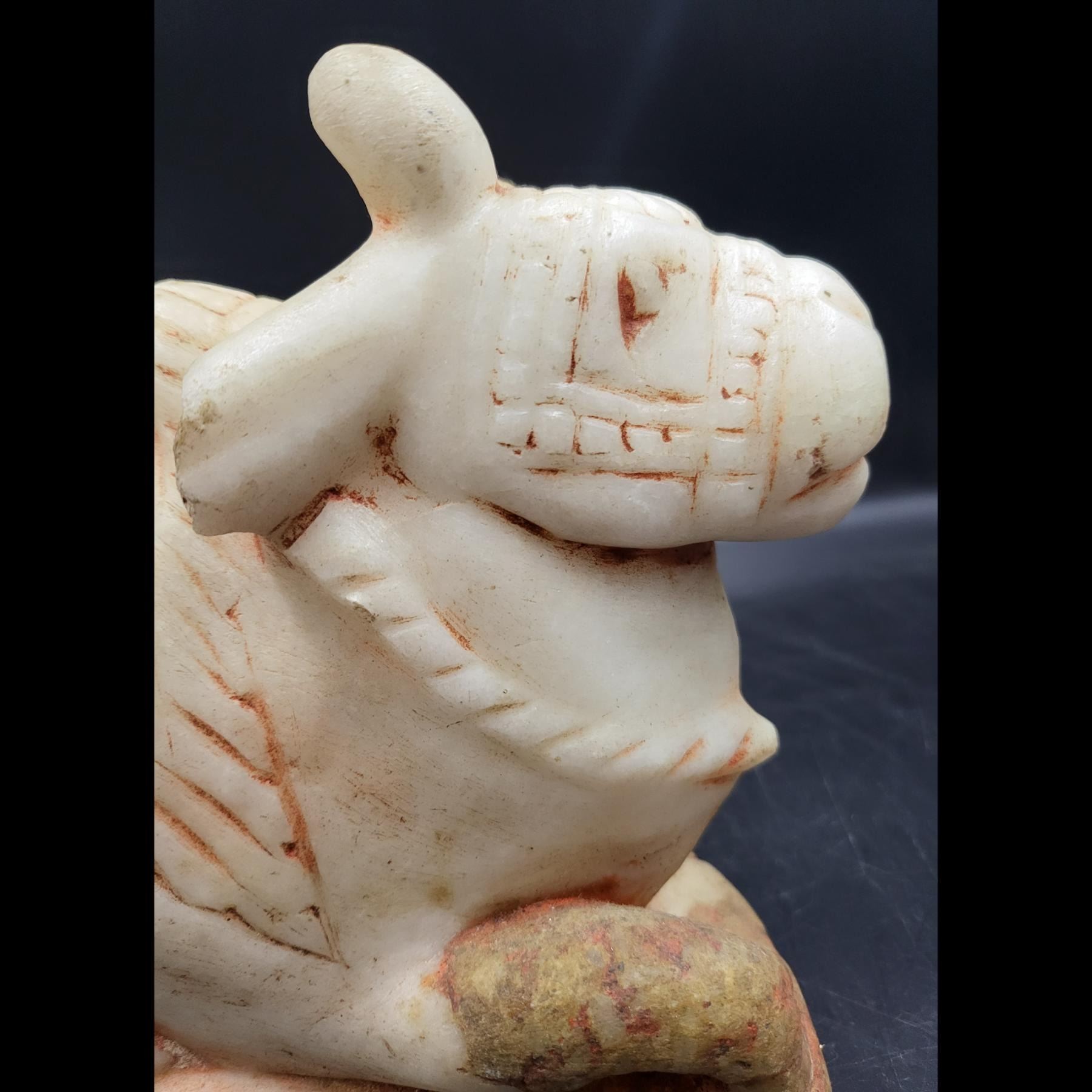 Antique Indian Marble Nandi 15th C Or Earlier. Measures approximately 3-1/2" x 9-1/2" x 4"