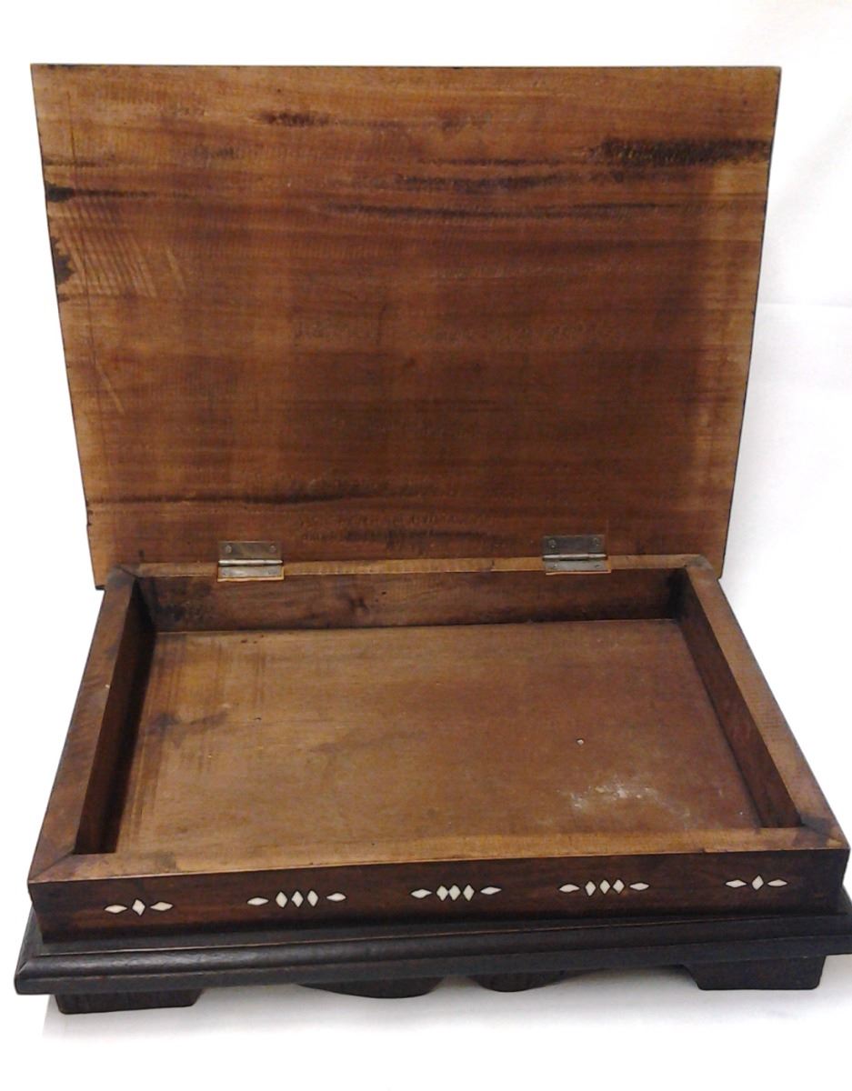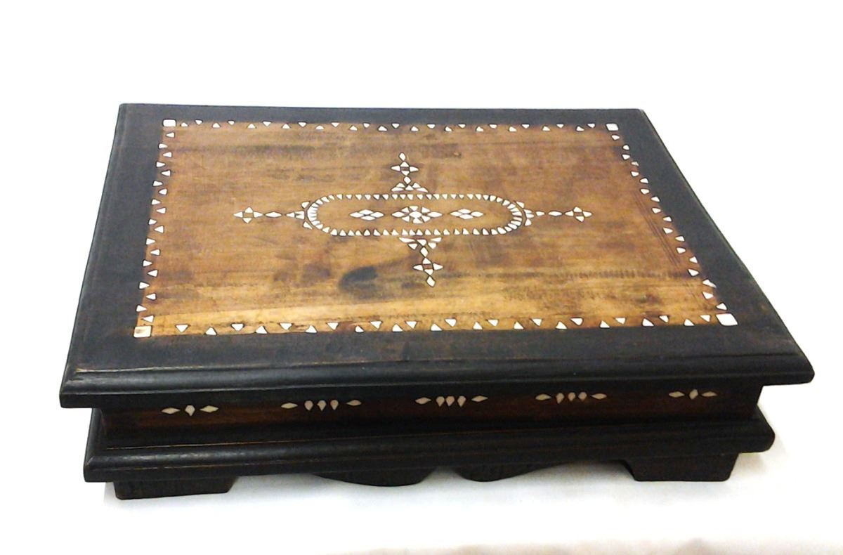 Antique Large Indo-Persian-Mughal Wooden Trinket Box Well Crafted with Mother of Pearl Shell Inlay 15.50x11.25", 6.25-lbs
