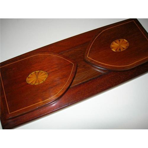 A delightful English book-slide in solid mahogany with each end being beautifully inlaid with a fan inlay and boxwood stringing.<p>Dating to around 1890 or 1900, late Victorian in period it remains in excellent condition.<p>When closed it measures 13" in length and expands to 21" when fully opened.