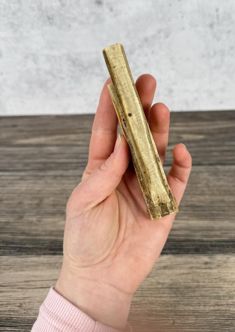 5" long. Very neat tool, made from bone.