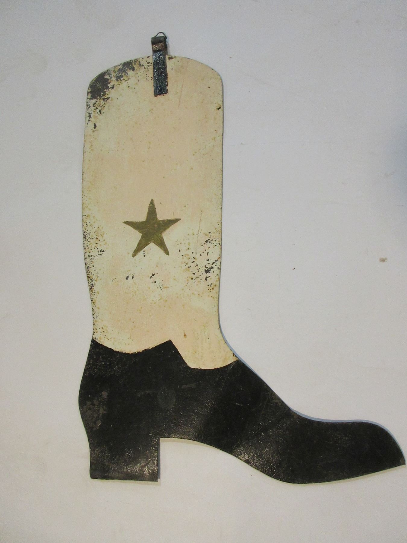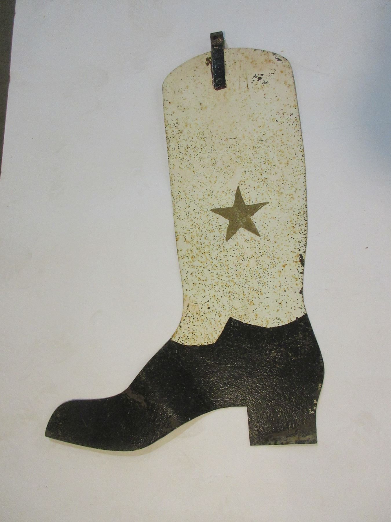Antique Iron Cowboy Boot Trade Sign- Hangs- 32" X 21" At Toe