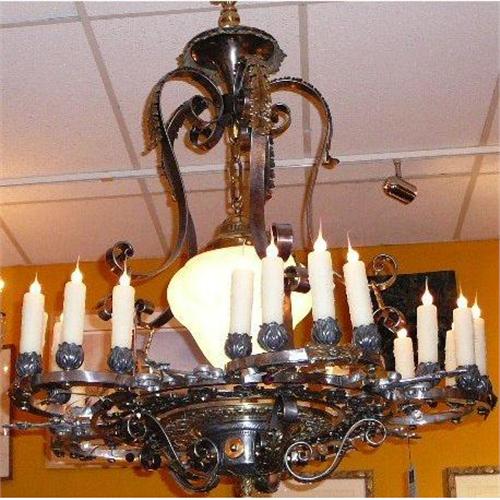 <tr><td>Title:Antique Iron and Bronze Chandelier</td></tr>