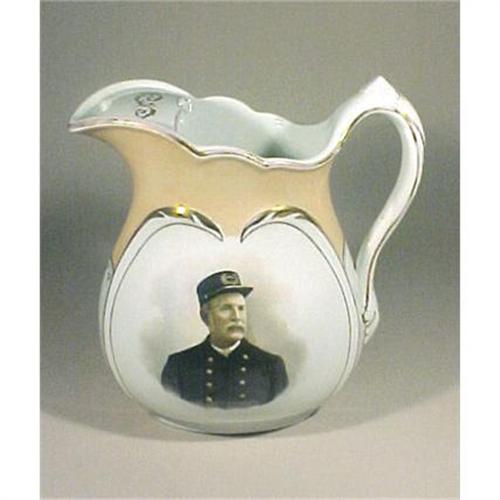 This is defiantly one of a kind ? it is a presentation pitcher from the Camphene Club which was presented to Lieutenant Warlock of the Philadelphia Police Force. As you can see in the pictures Lieutenant Warlock?s portrait embraces one side of the pitcher and on the other side in gold gilt it reads Camphene Club 1880 - 1897. It is a large porcelain pitcher measuring 10 7/8? at highest x 11 at widest x approx 6 ½? at deepest. It has an impressed mark on the bottom of ? Greenwood China Trenton NJ. The pitcher is in excellent condition. This is a fabulous police department memorabilia item!