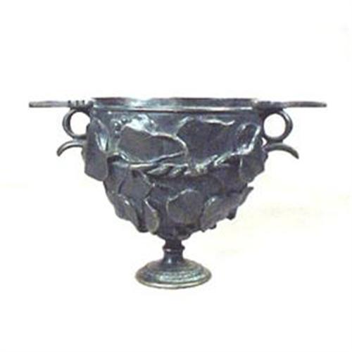 Outstanding Italian work of art! This bronze vessel in magnificent. Casted in very high relief ? with grape vines, grape leaves and grape bunches. The patina is also quite incredible! It is a very rich, dark, and mellow verde green. On the underside of the pedestal base there is a signature of the artist which I believe is A or G followed by Tommer Naples. Outstanding! This is an exceptional 19th century bronze work of art! In very very good condition! It measures 7 ¼? wide (including the handles) with a 4 1/8? diameter of the opening x 4 3/8? high.