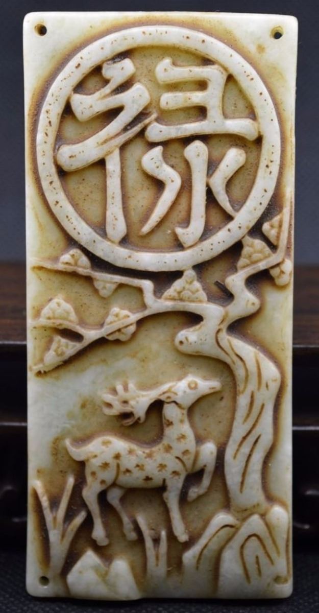 Antique Jade Hand Carved Plate; size 106mm*49mm.......guranteed natural jade