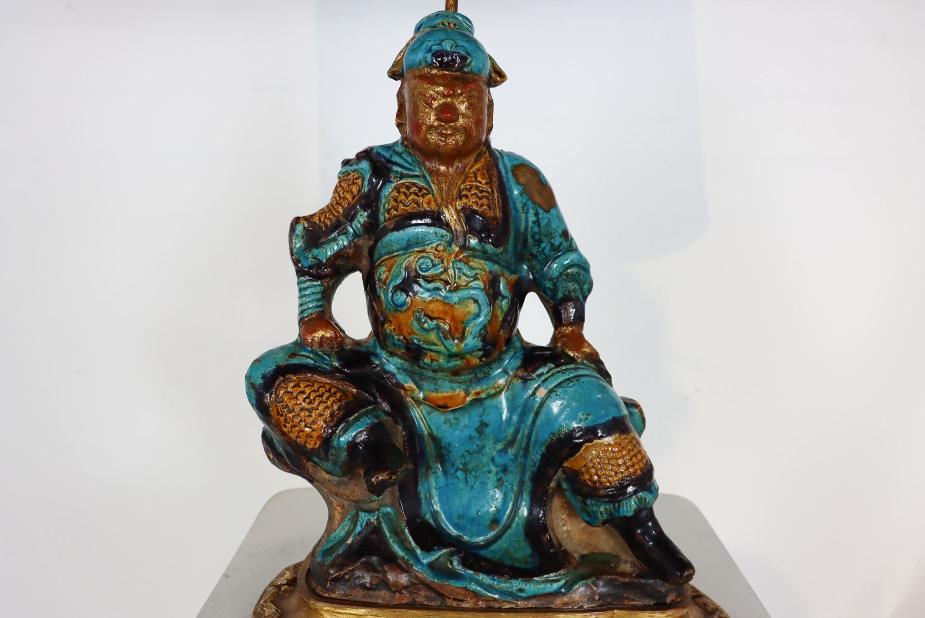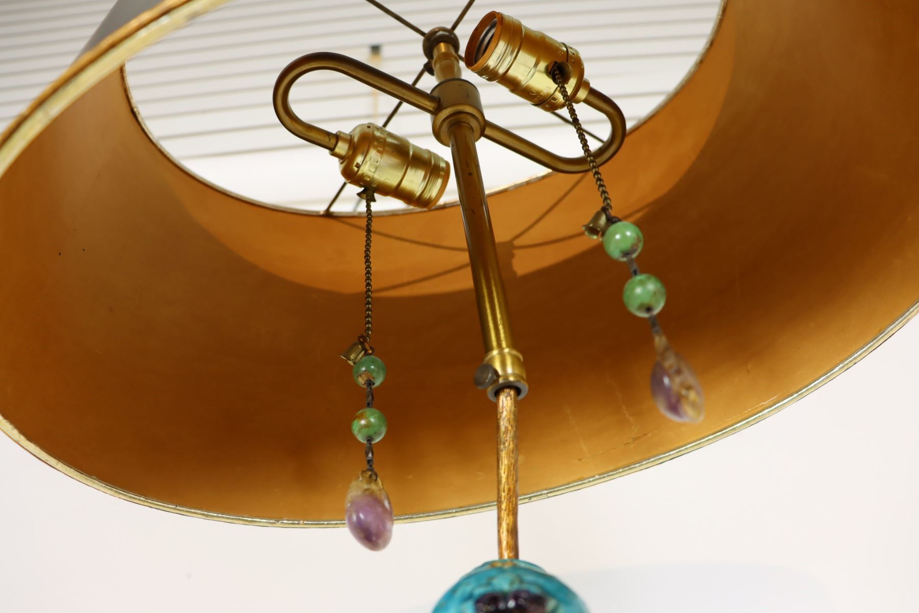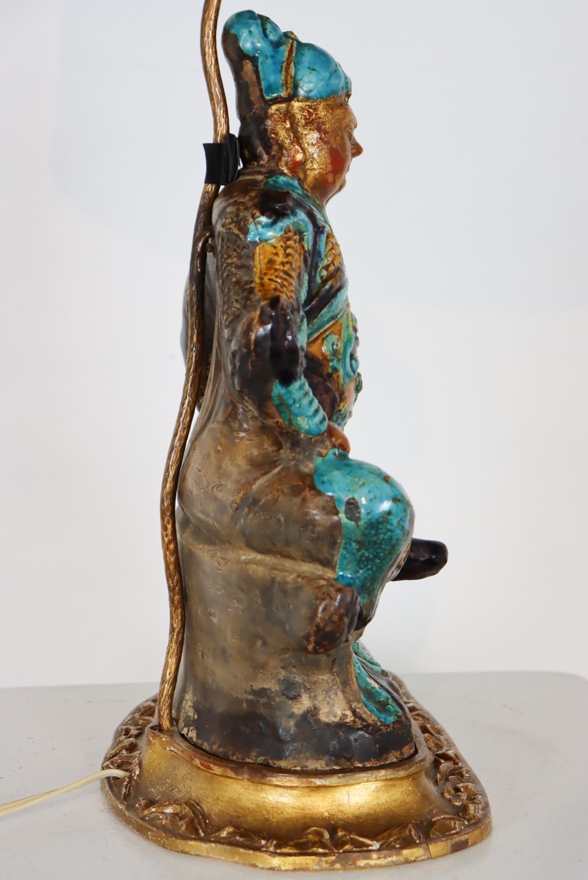 Figure converted, late 1800's. Japanese lamp with amethyst and jade pulls. As is.