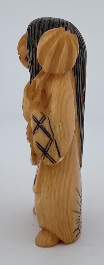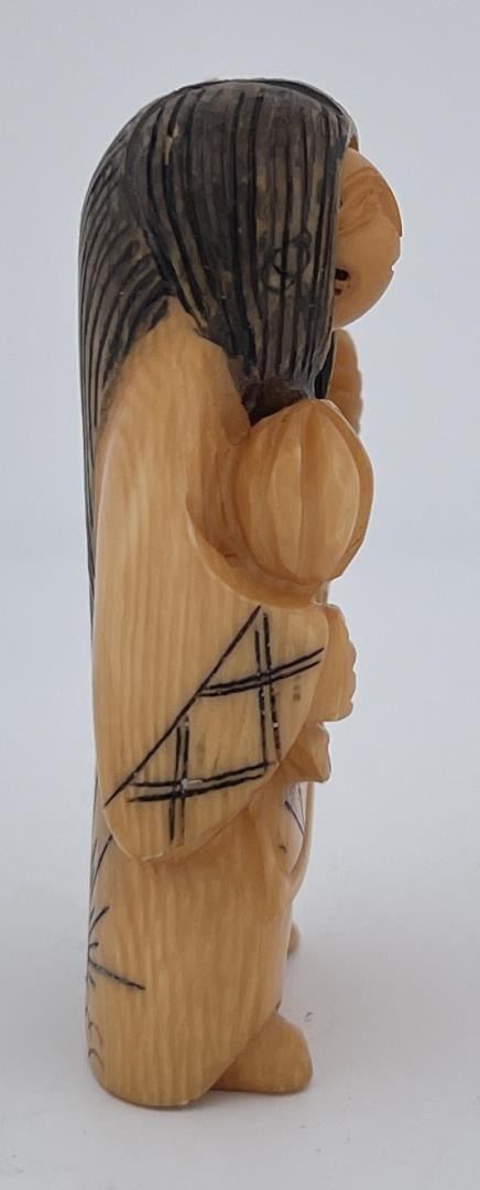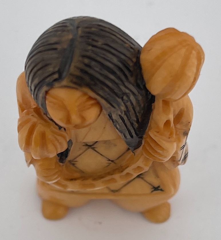 Very nice Meji Period Netsuke. Reversible face. 2" tall. Dates from 1868-1912. No international sales on this lot.