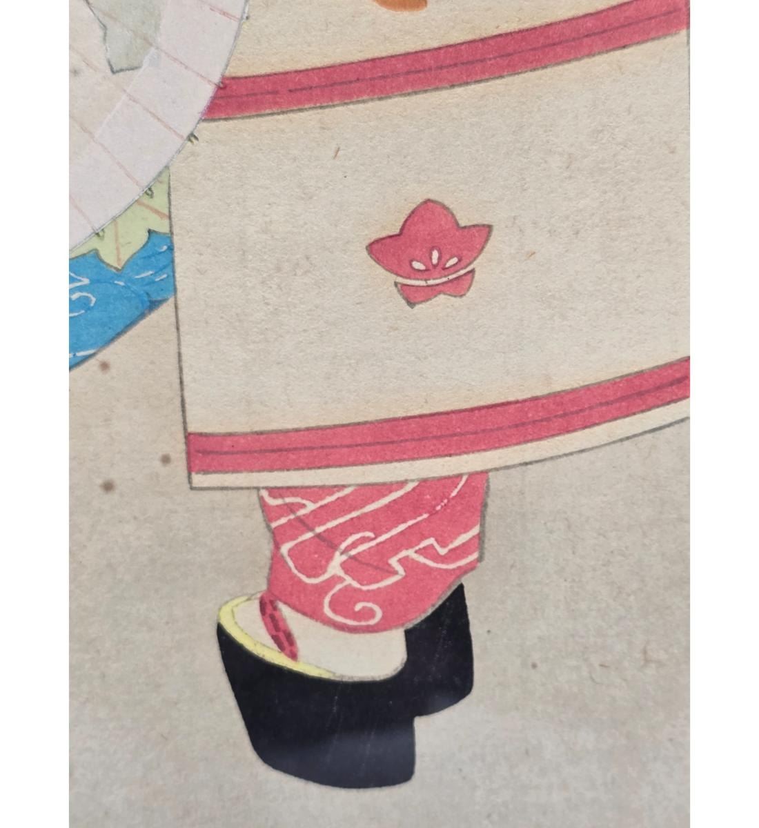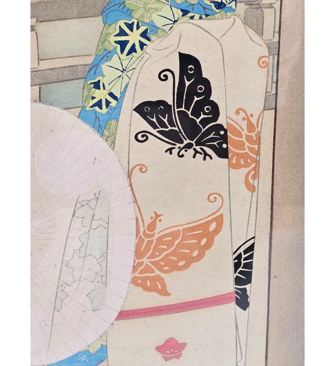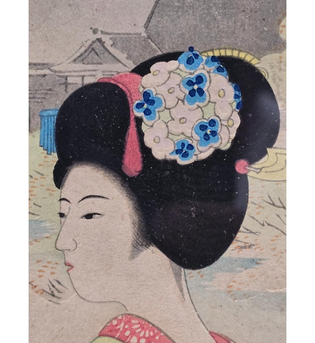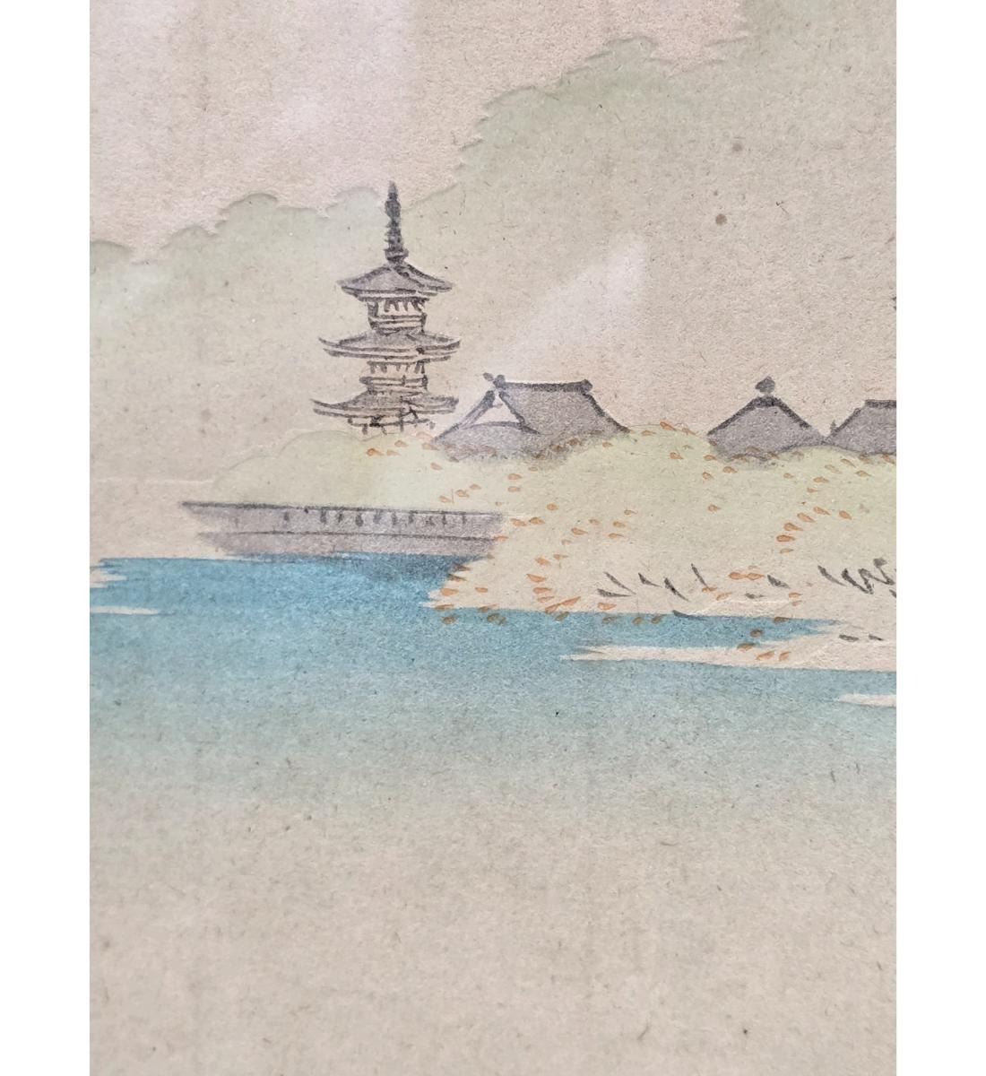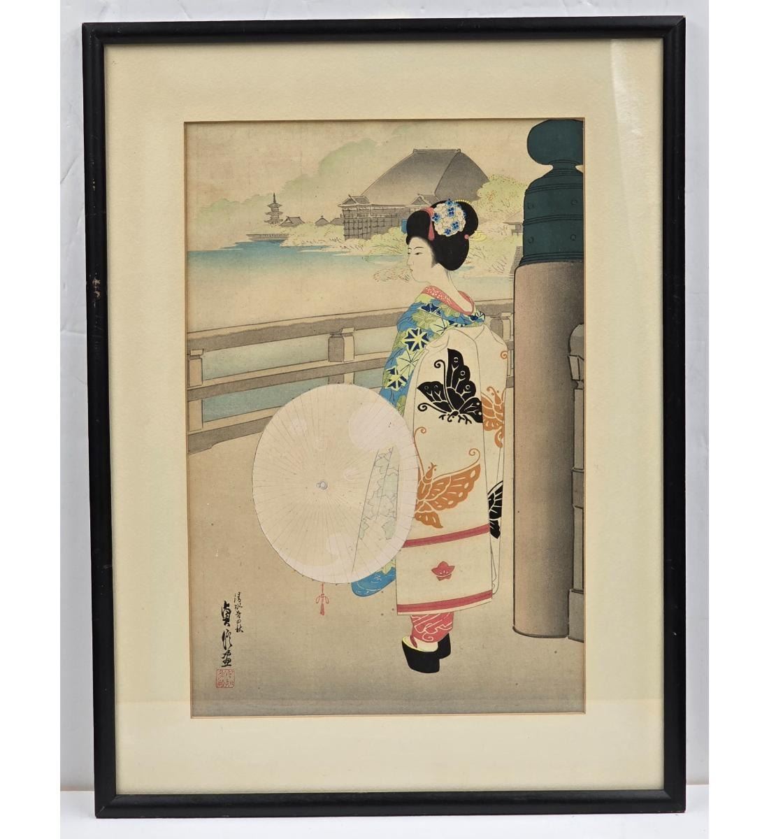 Antique Japanese Woodblock Print Signed. Frame 14" X 9.5", Blockprint Measure 15" X 2.5". Provenance: One Person Private Estate Central Florida.