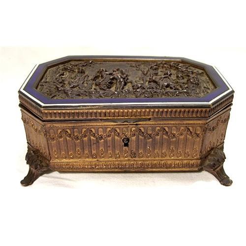 <tr><td>Title:Antique Jewel Box Bronze and Enamel</td></tr>