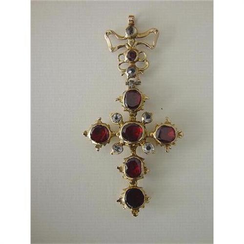 STUNNING Antique Flemish Jeweled Cross-Ruby colored Stones</em></td>