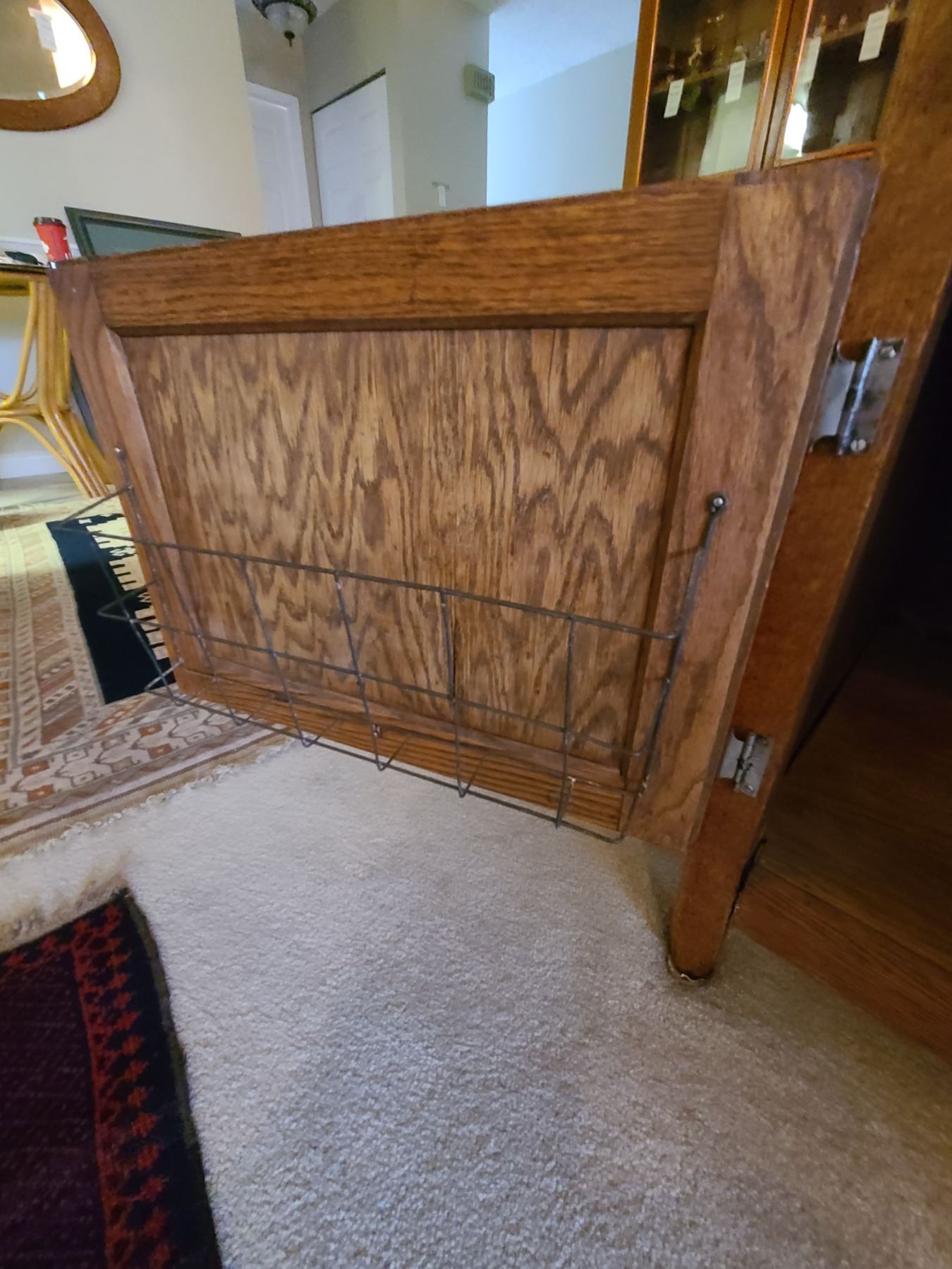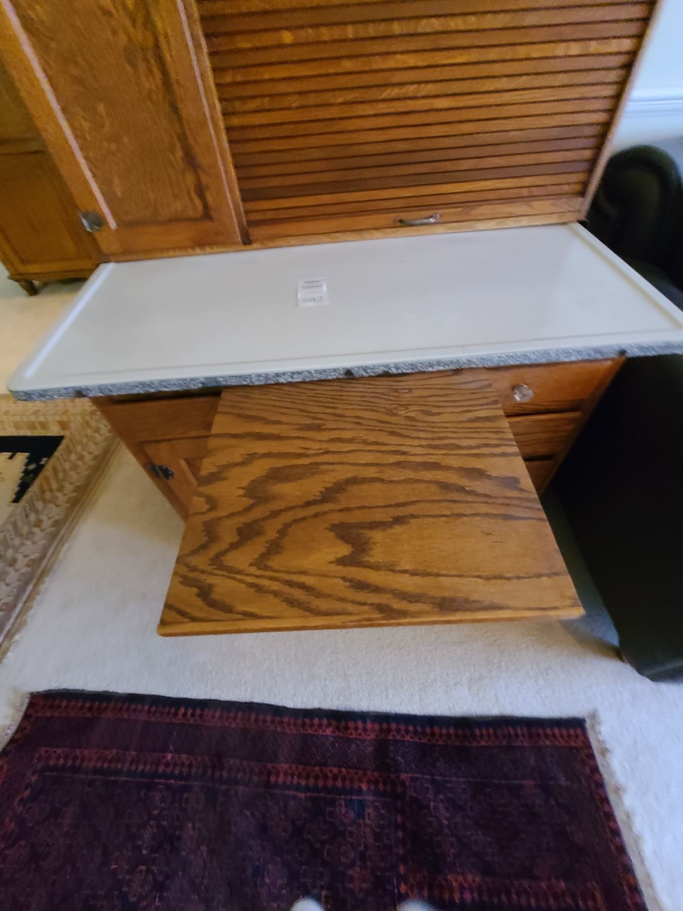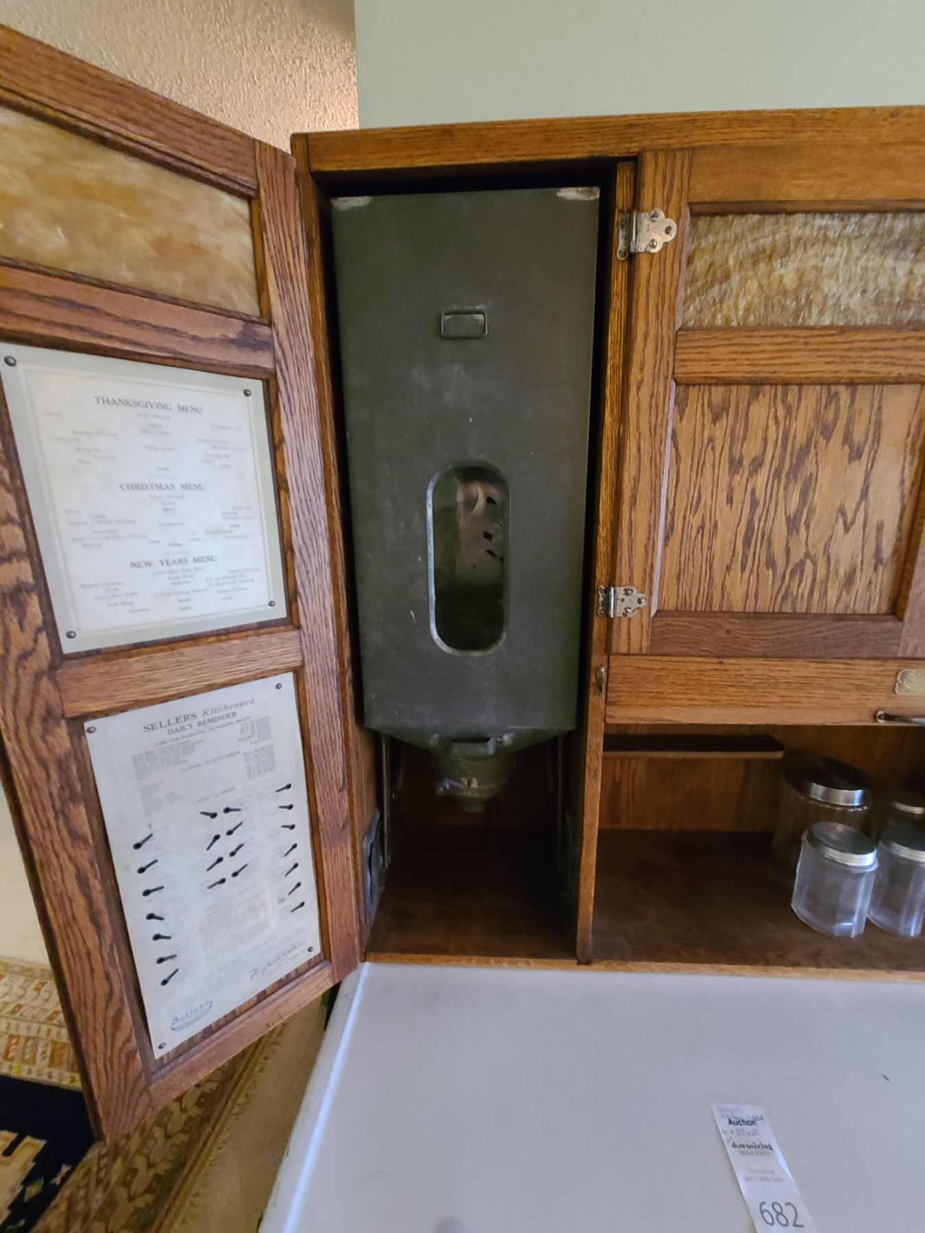 Antique cupboard 41x27x65 with flour grinder and folding door. Very heavy, bring help to move downstairs. Pickup at 11 am.