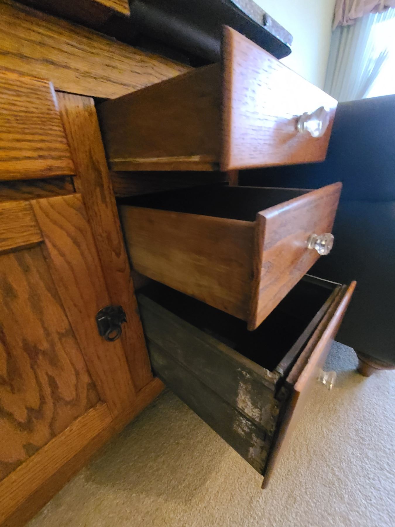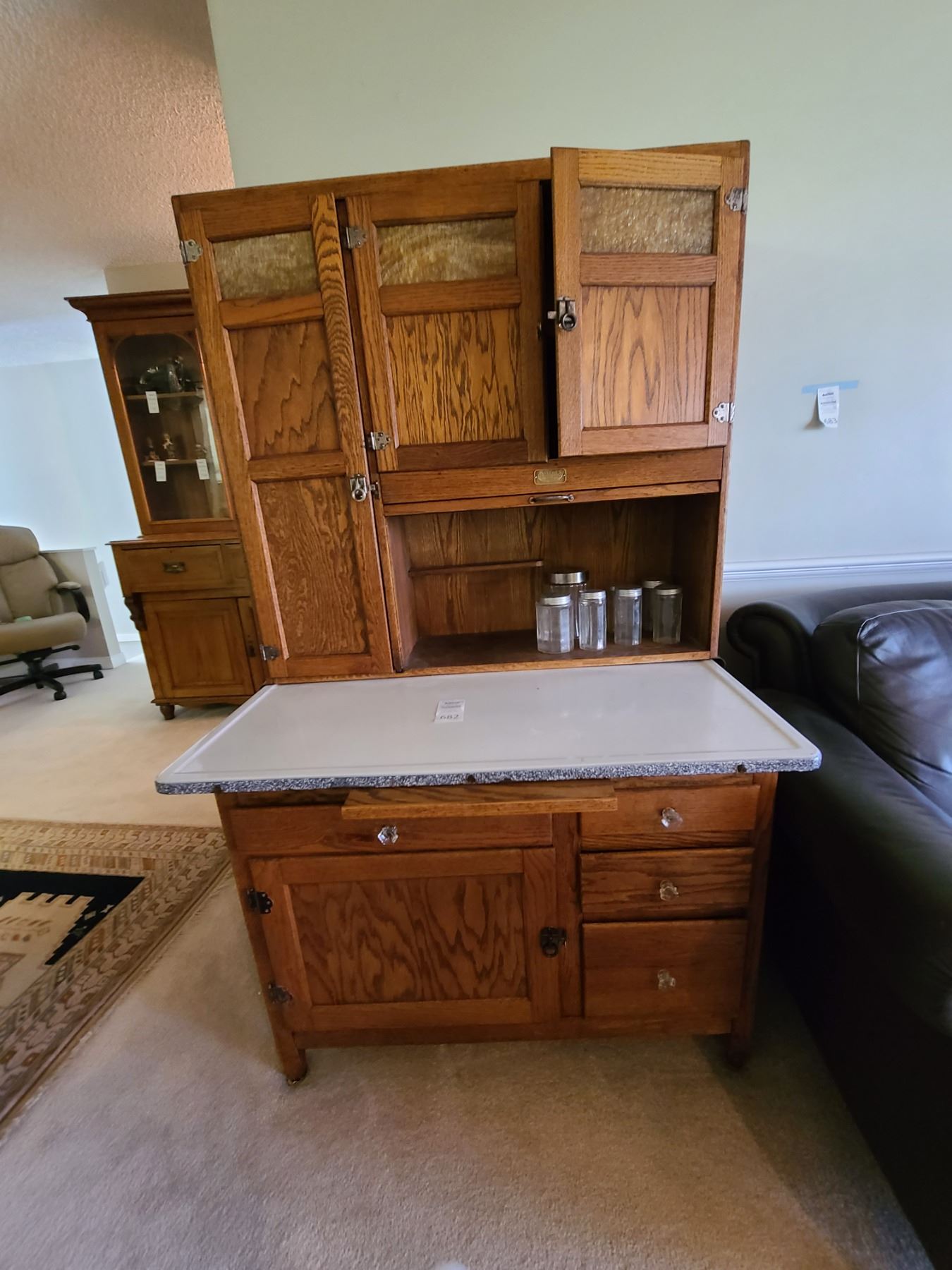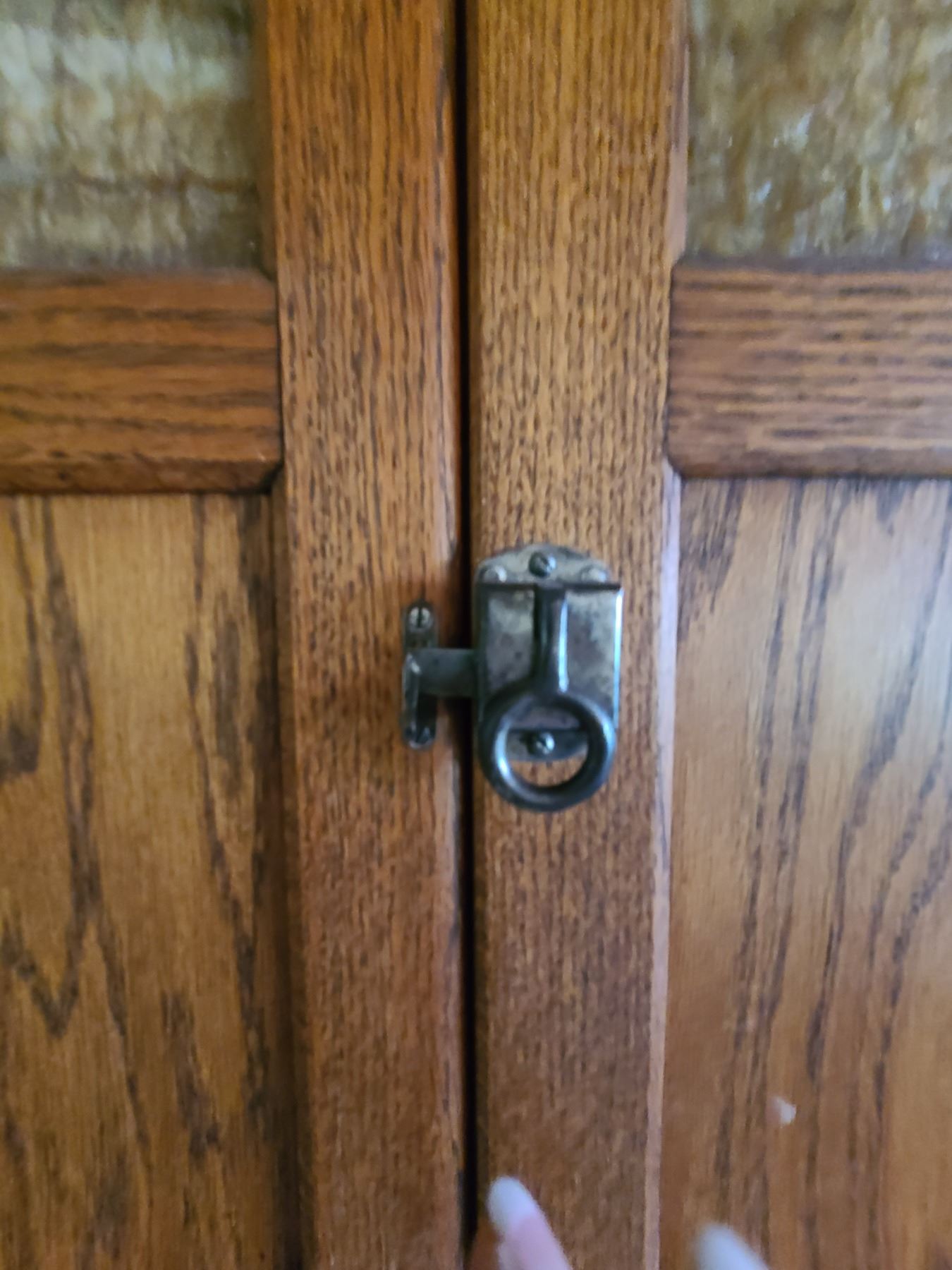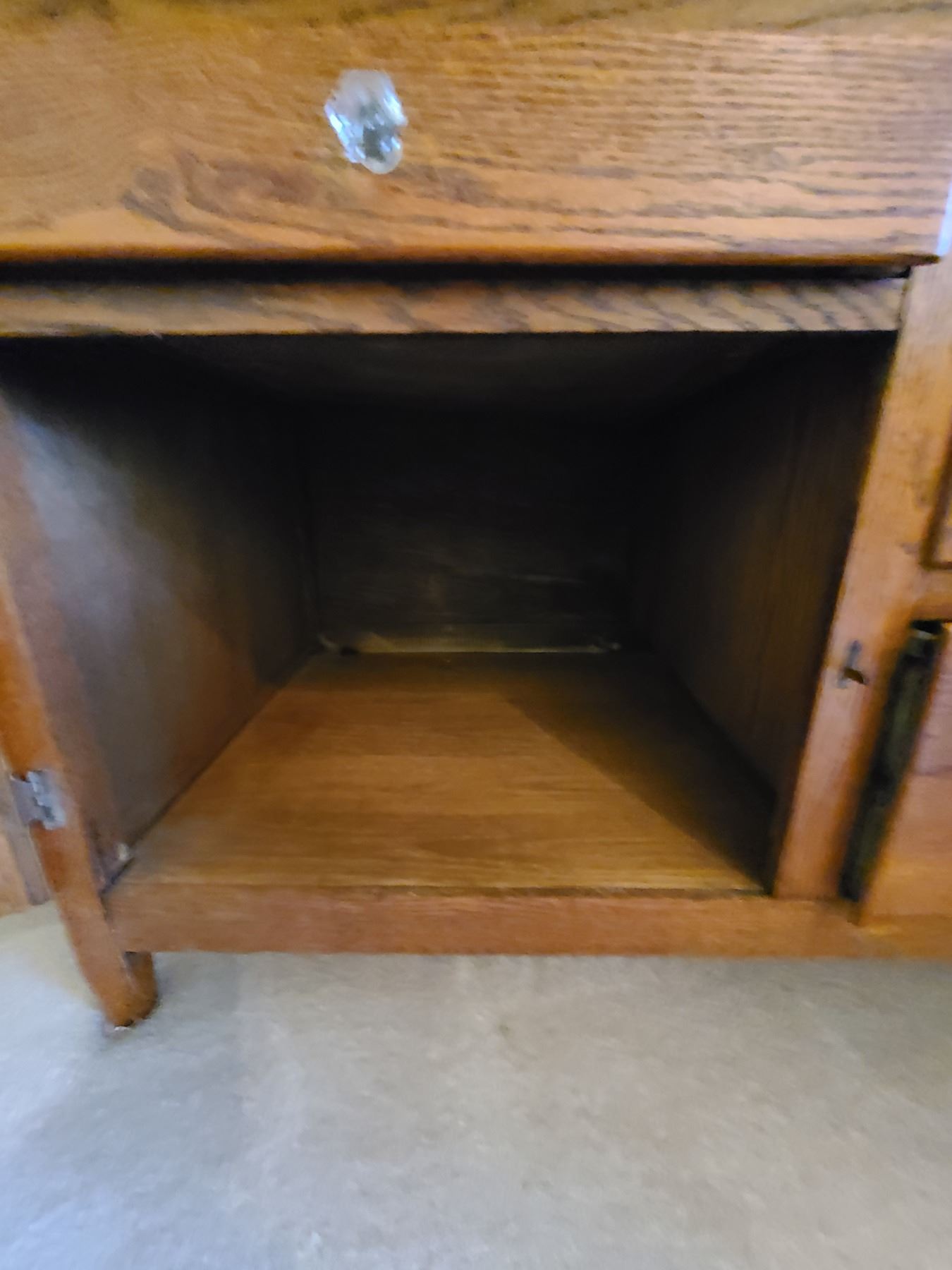Antique cupboard 41x27x65 with flour grinder and folding door. Very heavy, bring help to move downstairs. Pickup at 11 am.