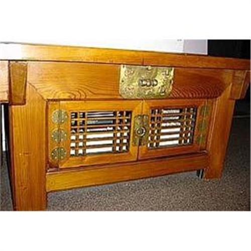 <table width="100%" border="0" cellspacing="0" cellpadding="4"><tr><td><em> A very unusual and beautiful chest. You'll never see another like it. It's fun to use and opens from both the front and the top.</em></td></tr><tr> <td width="100%"> All Original Authentic 19th Century Yi (Choson) Dynasty Korean Duiju (Rice Chest) from Kyonggi Province. This tuiju (rice chest) was selected from a recent antique expedition to Korea as a very fine example of the sturdy design you expect to find in rice chests. It is made entirely of a thick, handsome red pine wood. That was the only wood Korean royalty would use in the construction of their palaces. It is very unusual to see lattice work on a rice chest, and that adds to the collectability of this piece. Korean furniture artisans from the Yi (Choson) Dynasty are renowned for their selection and utilization of wood grains, and for their metal designs. This quiet work of art is modestly adorned with Buddhist symbols. One look at this piece and you will know why Korean Antiques are widely regarded as the world's very best. I would be happy to email you, upon request, more detailed photos of all the sides, back, top, bottom, and interior. Excellent Condition. 20"(50cm)h x 39"(99cm)w x 23"(58cm)d </td></tr><tr> <td> </td></tr><tr> <td>Reference #: 343385</td></tr><tr><td>Condition:See Description</td></tr><tr><td>Year:See Description</td></tr><tr><td>Title:Antique Korean Rice Chest</td></tr><tr><td>Location:New York City</td></tr></table>