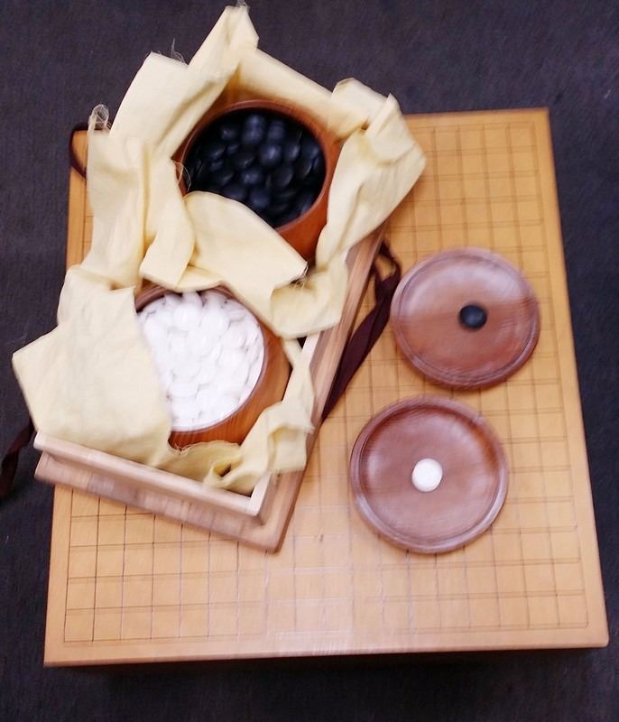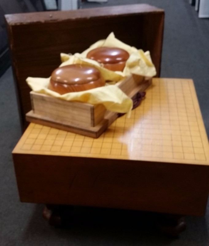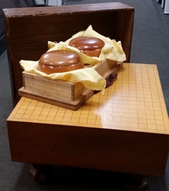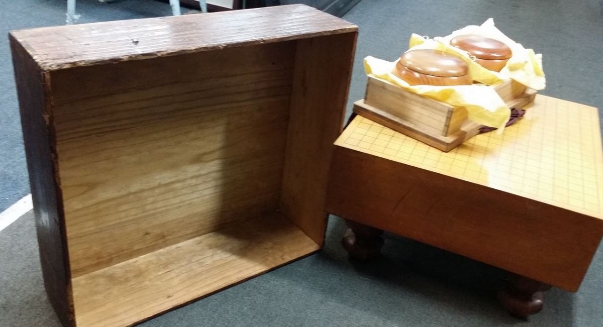 Antique Korean Slate and Shell Baduk Weiqi Gameboard (Korean Chess Set) in original box.