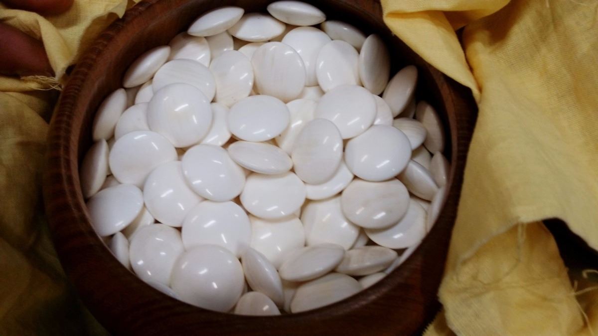 These stones are prized for their exceptionally fine grain. The grain from all grades of Suwabute clam puts to shame even the prized Snow (yuki) grade Mexican go stones. Their fine grain not only looks exceptional, but adds to the durability and strength of the stone, making them far less prone to chipping or damage than their Mexican and Hainan counterparts. This fine grain is the result of, in part, species of clam and the Pacific's beneficial Kuroshio current. In addition, Suwabute clam stones maintain their original luster as they age, while Mexican stones tend to yellow over decades.