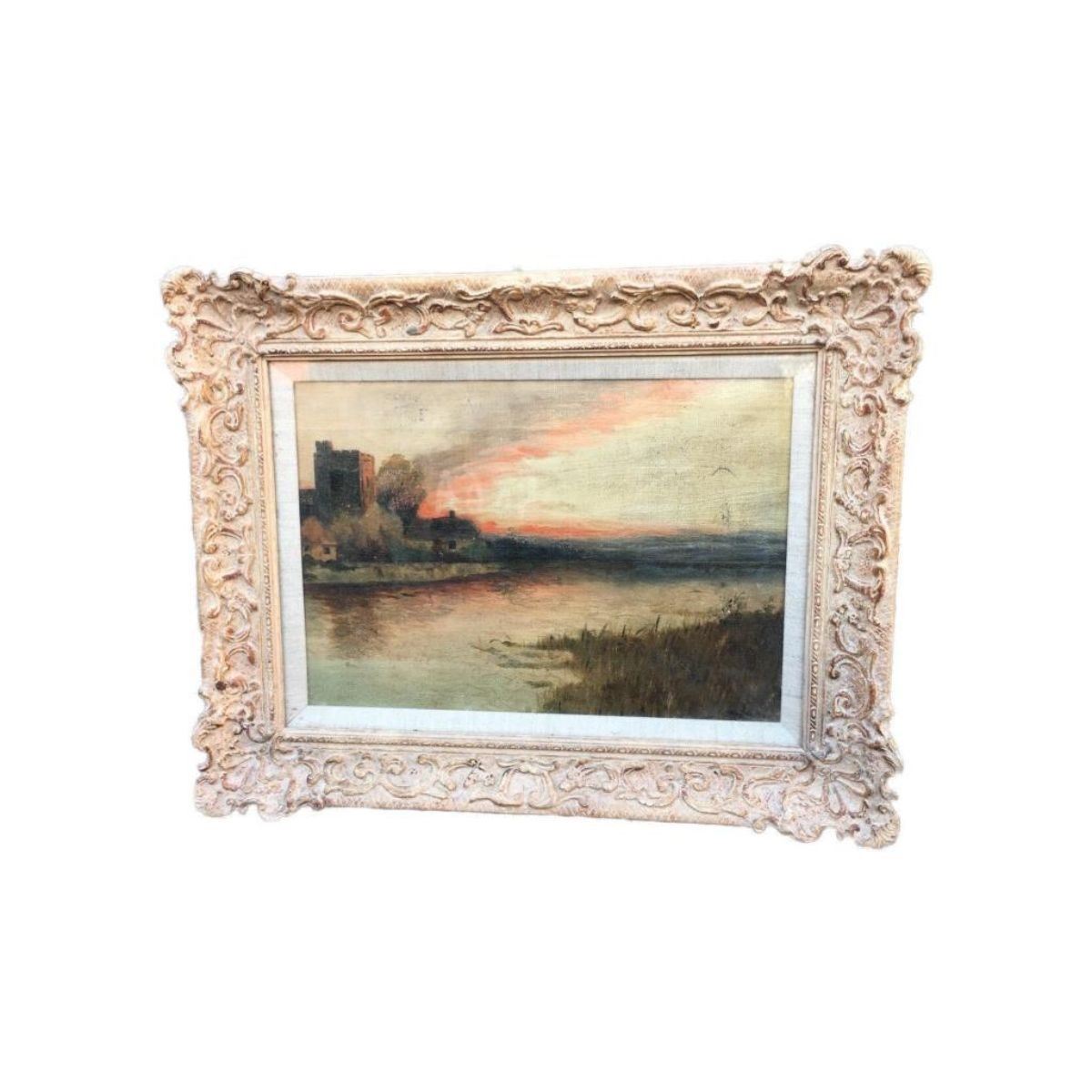 A stunning original antique oil painting depicting a twilit river and church on its banks, of lovely composition signed by the artist to the bottom right.In nice vintage condition with some wear consummate with age as pictured sitting in a more modern gold gilt frame.Measurements: 47cm-37cm. - 9200-020318-EB-30230