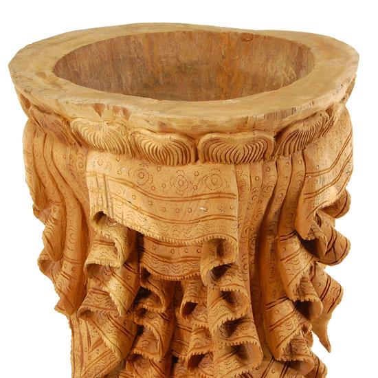 Excellent artist hand-carved lace detail on antique teak mortar; 36" x 20"