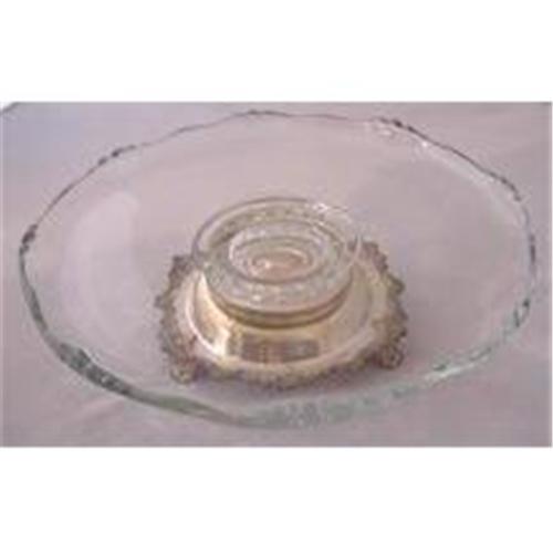 Important antique Imperial Lazy Susan with a highly ornate silver plate base. The contrast of the pressed glass and repousse silver plate is superb. Each of the three feet of base is in the form of a lion?s paw and acanthus leaf. This is a perfect wedding or anniversary gift.