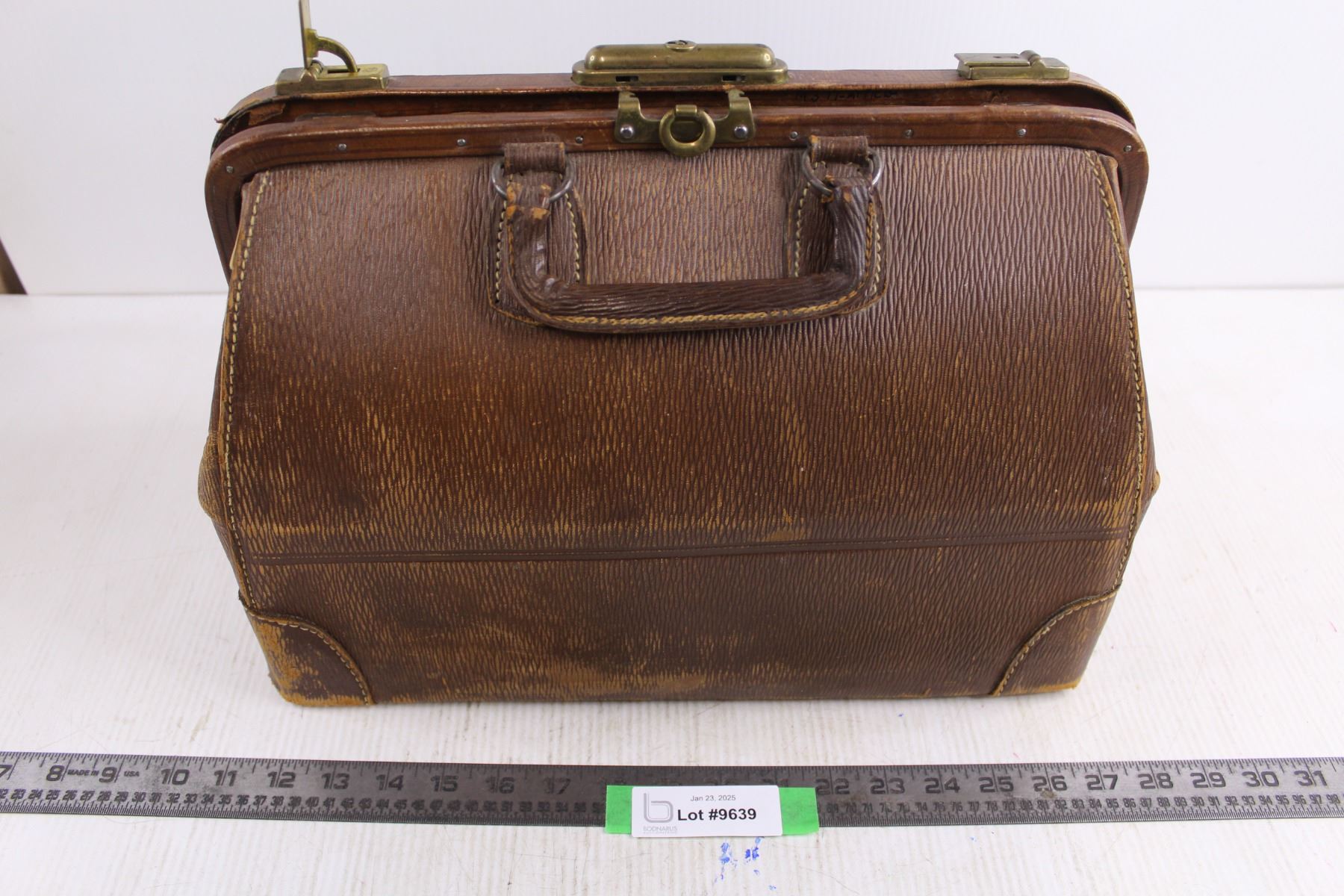 Antique Leather Doctor's Case With Key 16" x 8" x 11"