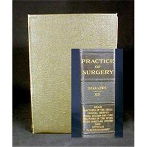 Practice of Surgery Clinical Diagnostic Operative Postoperative Volume XII. Hagerstown, Maryland W.F. Prior Co. Inc. 1932. This book is incredibly intriguing! There are numerous photographs and illustrations some in color some in black and white. They are very descriptive and even contain quite a few photographs of actually patients conflicted with the disease being covered. The book covers surgery procedures for the brain, cranial nerves, spinal column and spinal cord, fracture and dislocation of the spine, blood vascular system, surgical diseases of the skin, surgery and syphilis, and electro surgery. It is bound in chocolate brown leather vellum with gold gilt lettering on the spine. The condition is very very good. There is next to no wear on the cover except for some rubbing to the outer front hinge. The binding is tight and clean. It is 8vo in size measuring 9 7/8? x 7? x 2 5/8?.