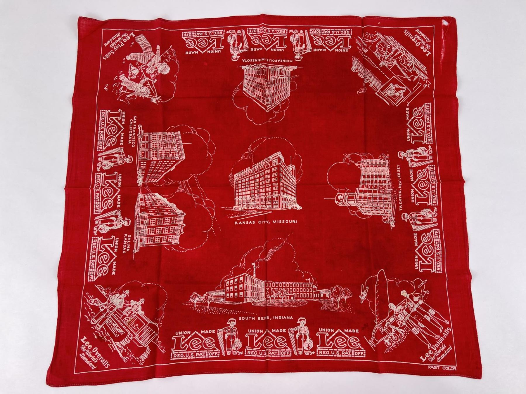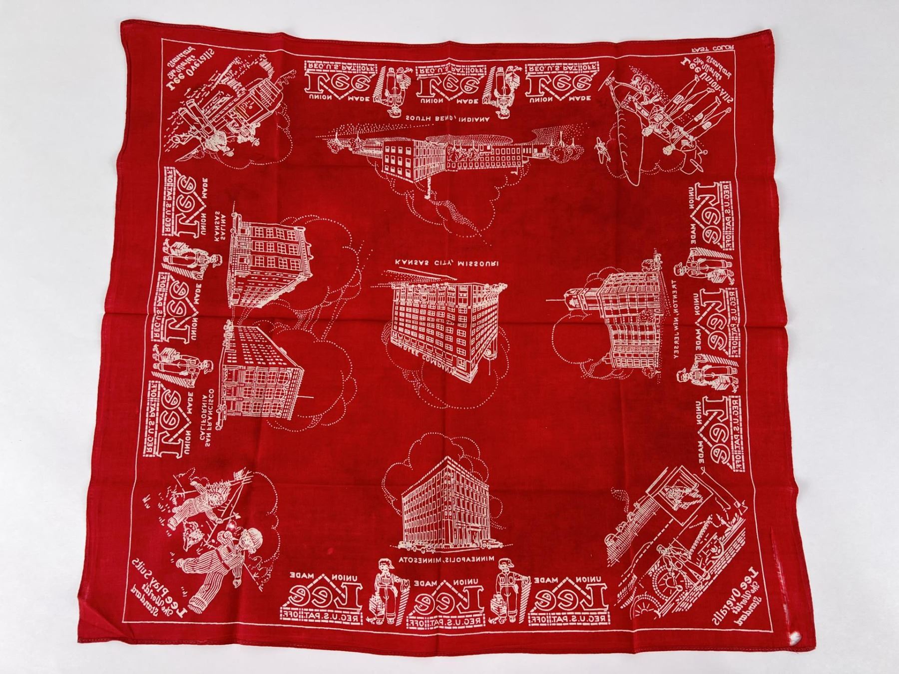 25 1/8" long, 23 3/8" wide. Lee Overalls, Play Suits, Union Alls.