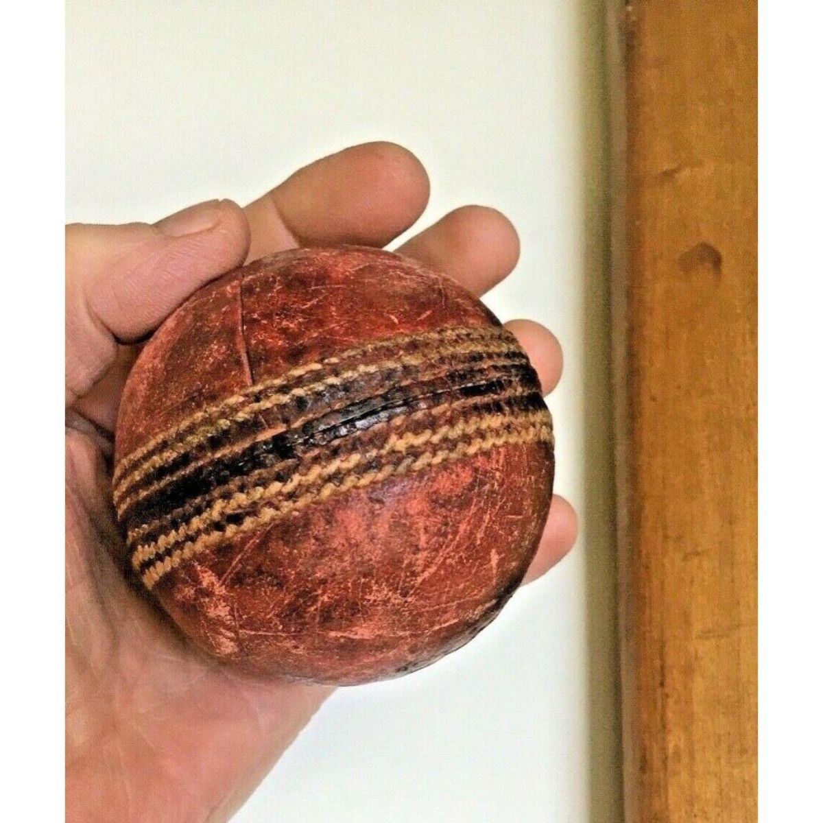 Antique Les Berry MODEL Leicestershire C.C.C.England Cricket Bat / Paddle & Ball. * crack at the end of the paddle & separation of material at the handle, for decorative purposes. 33 1/2" L X 4 1/2" W paddle.Â